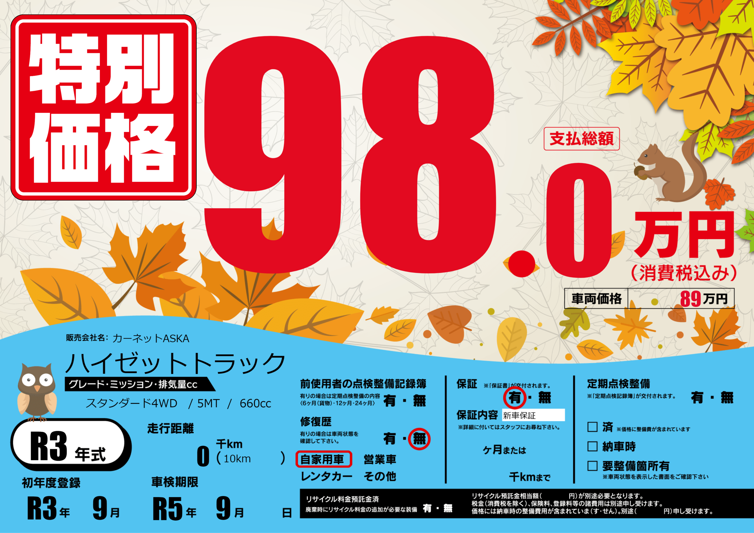 | 走行キロ | - | 初年度登録 | R3年9月 |