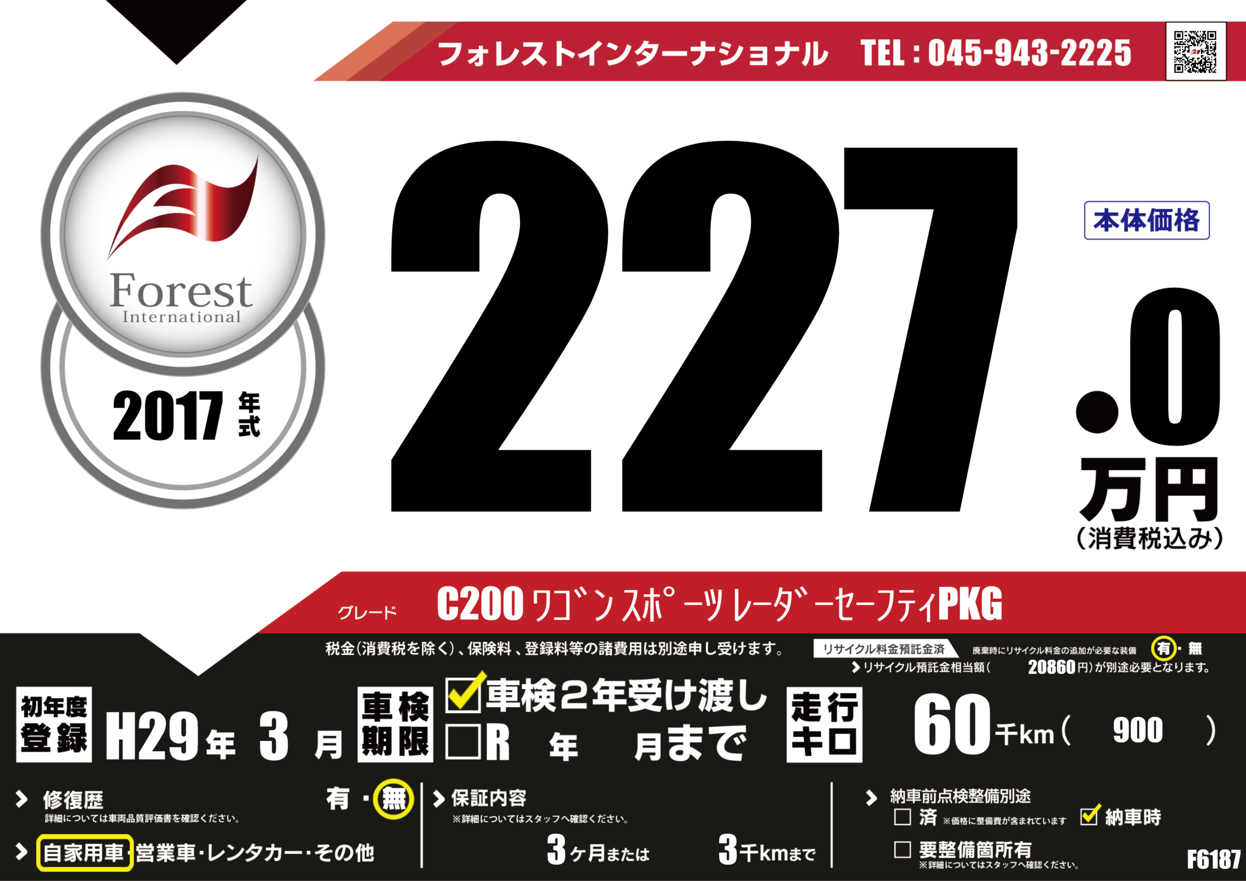| 走行キロ | 6万km | 初年度登録 | H29年3月 |
