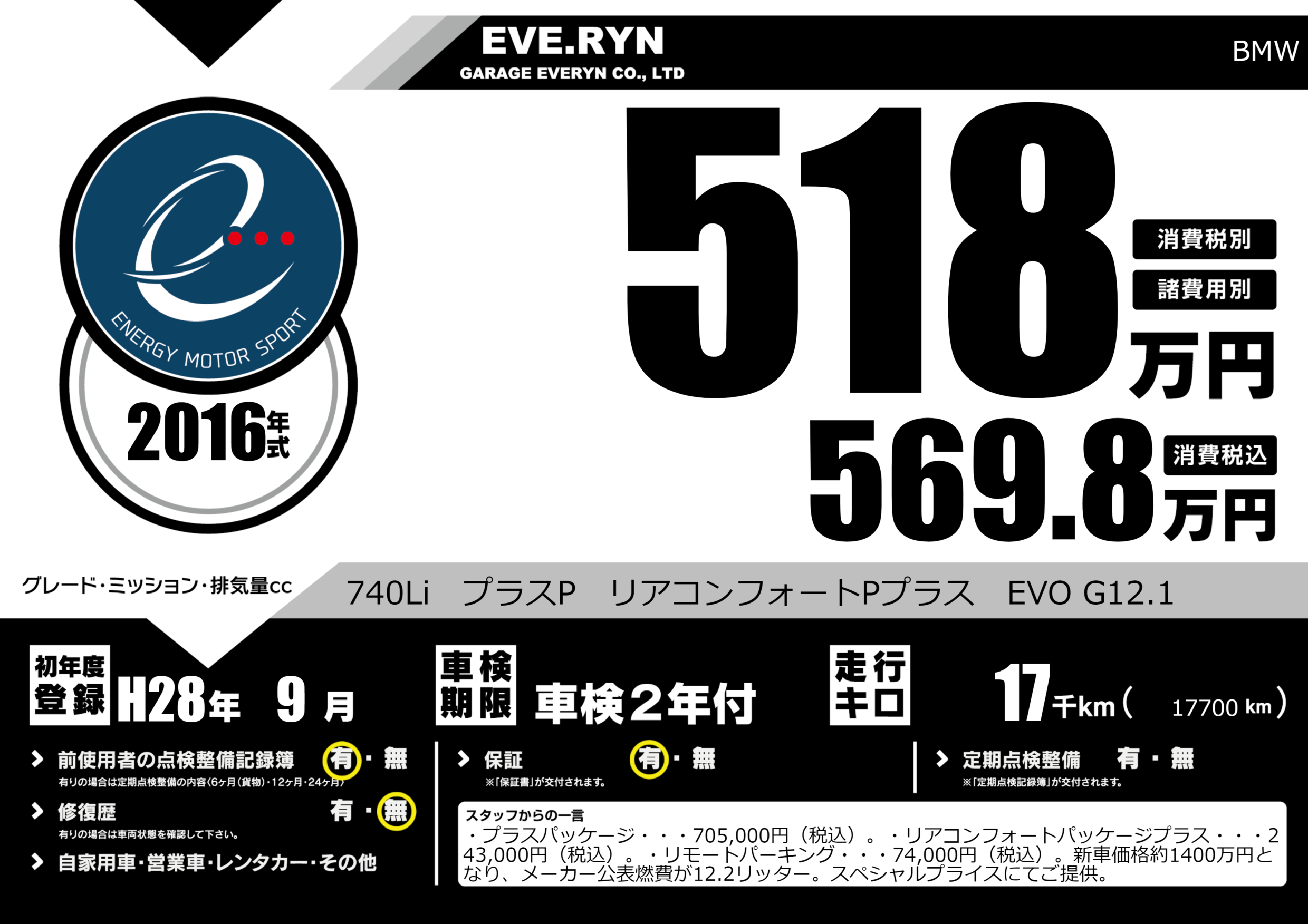 740Li プラスP リアコンフォートPプラス EVO G12.1 |