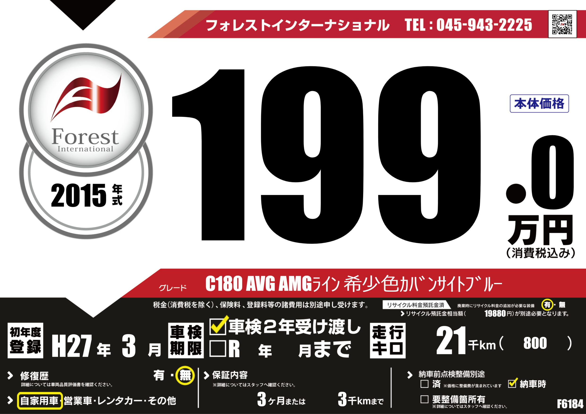 C180 AVG AMGライン 希少色カバンサイトブルー |