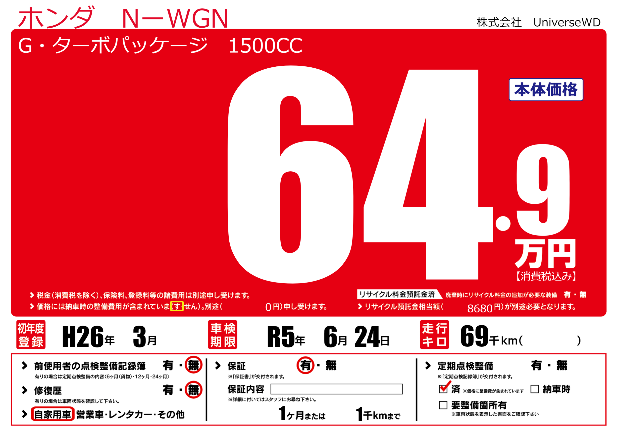 | 定期点検整備 | 定期点検整備済み | ||