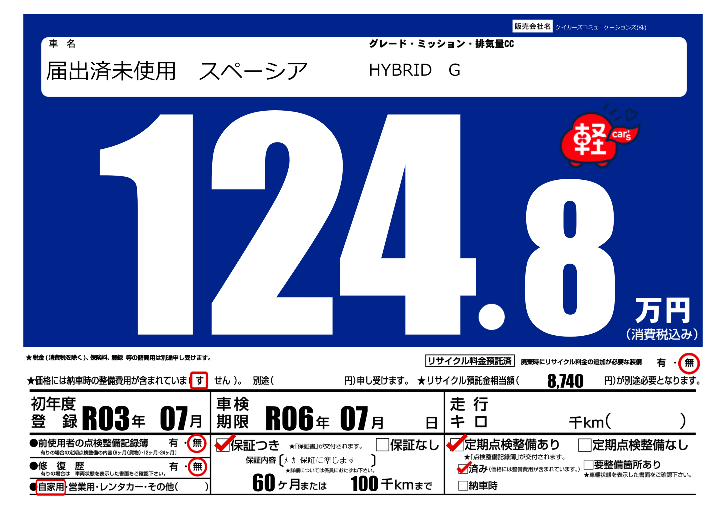 | 定期点検整備 | 定期点検整備あり 定期点検整備済み | ||