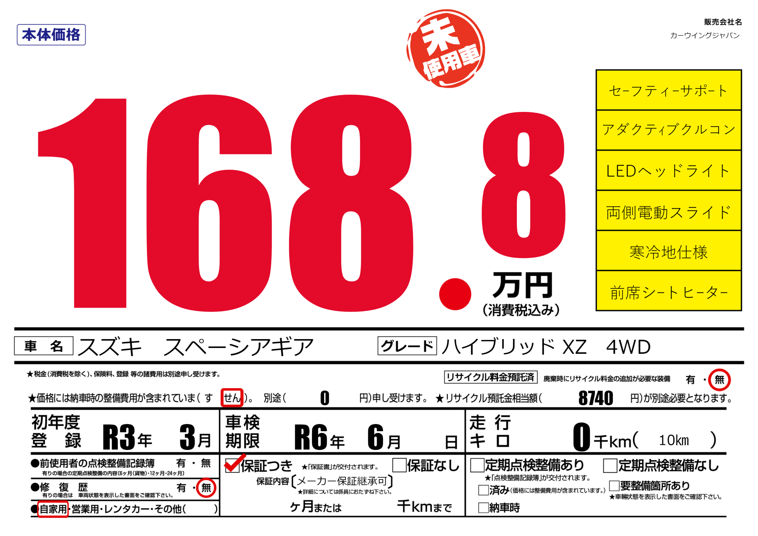 保証付き 保証内容(メーカー保証継承可) ---ヶ月または()千kmまで |