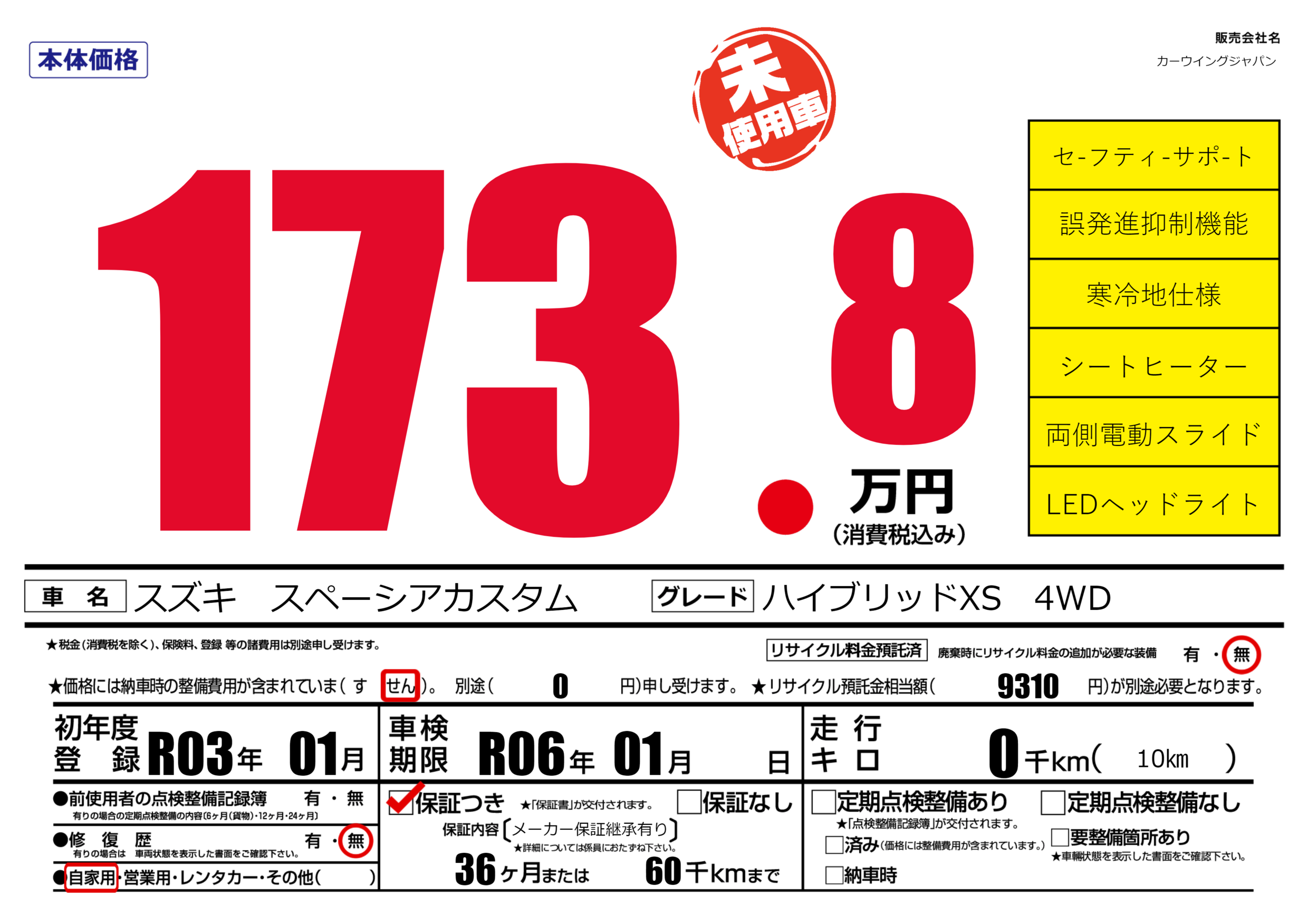 | 走行キロ | - | 初年度登録 | R03年01月 |