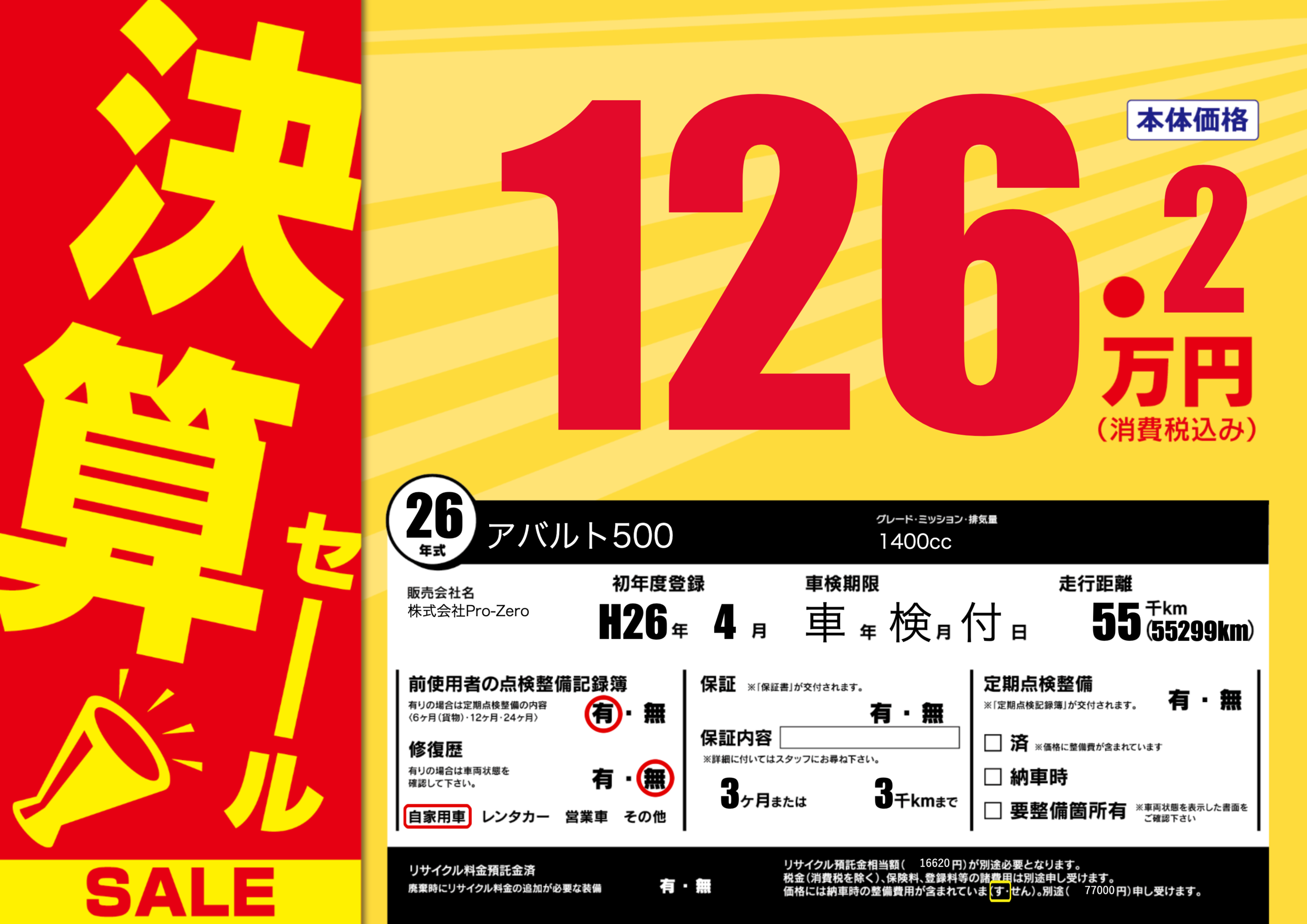 | 走行キロ | 5.5万km | 初年度登録 | H26年4月 |