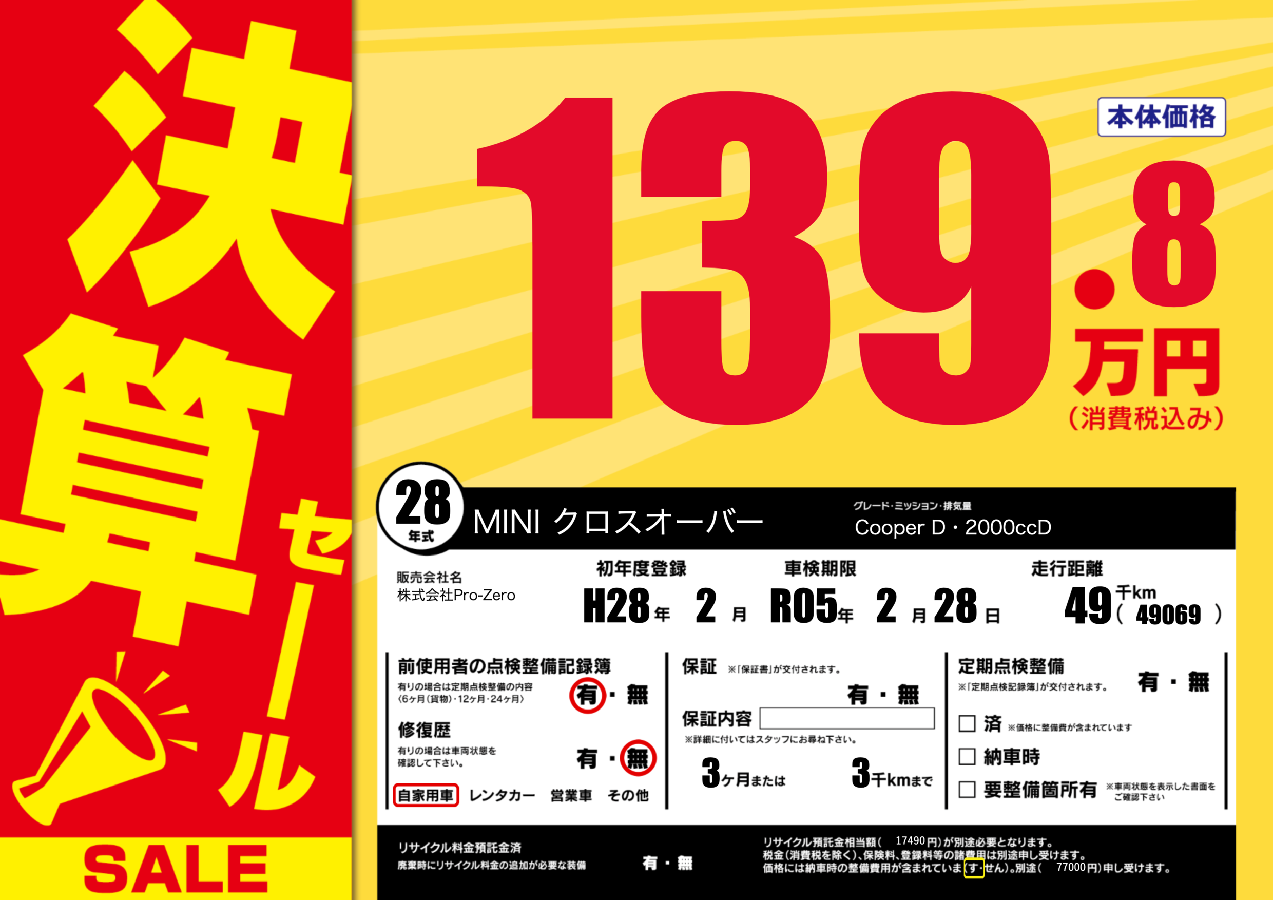 | 走行キロ | 4.9万km | 初年度登録 | H28年2月 |