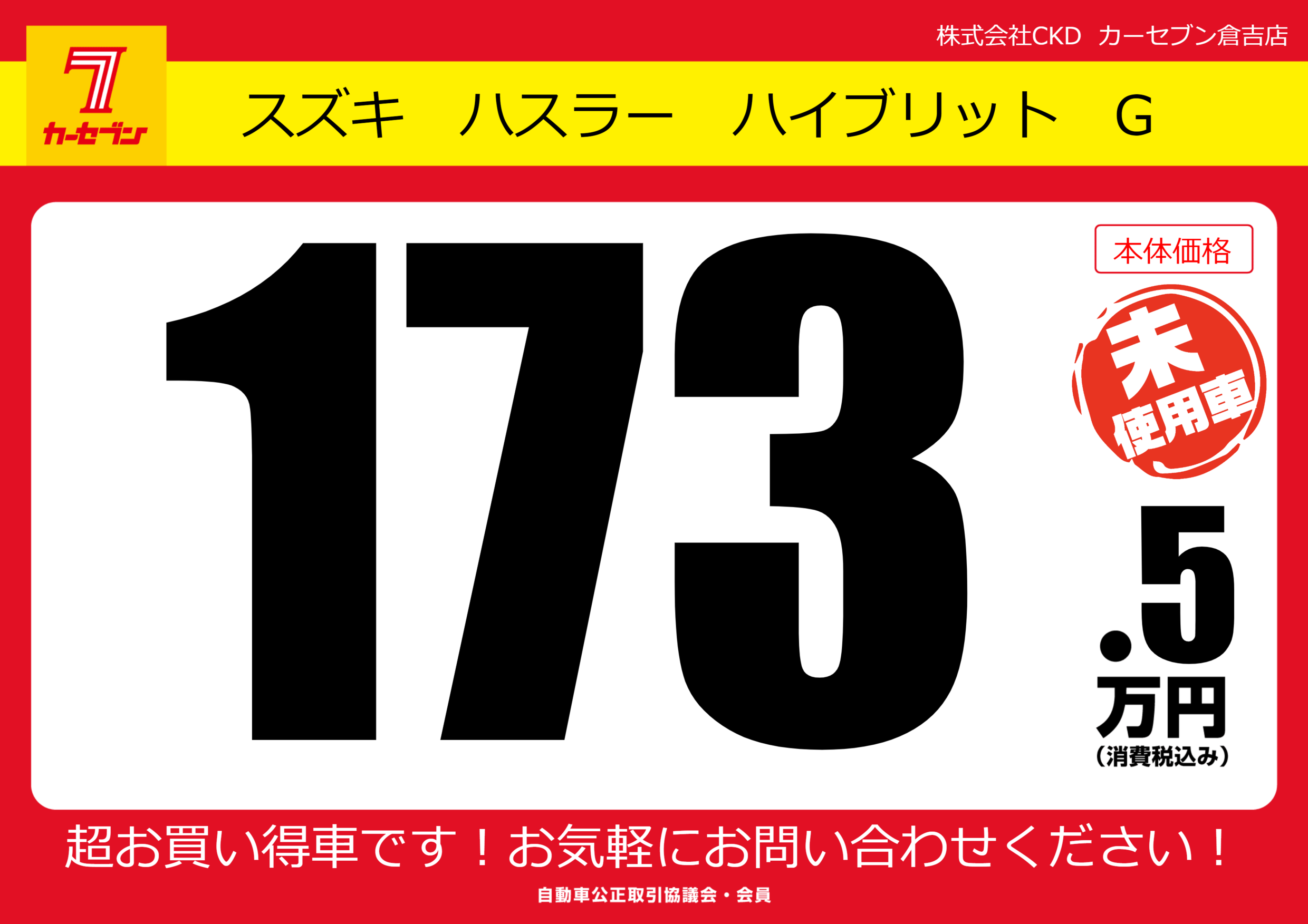 | 車名 | スズキ ハスラー ハイブリット G | グレード ミッション 排気量 |