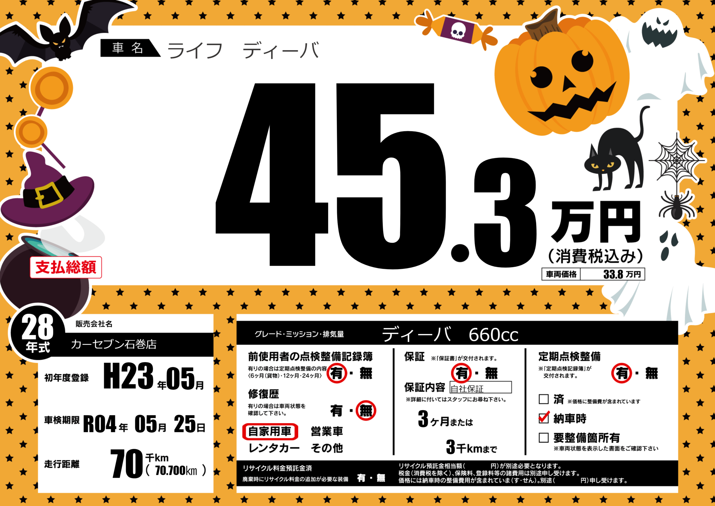 | 定期点検整備 | 定期点検整備あり 納車時あり | ||