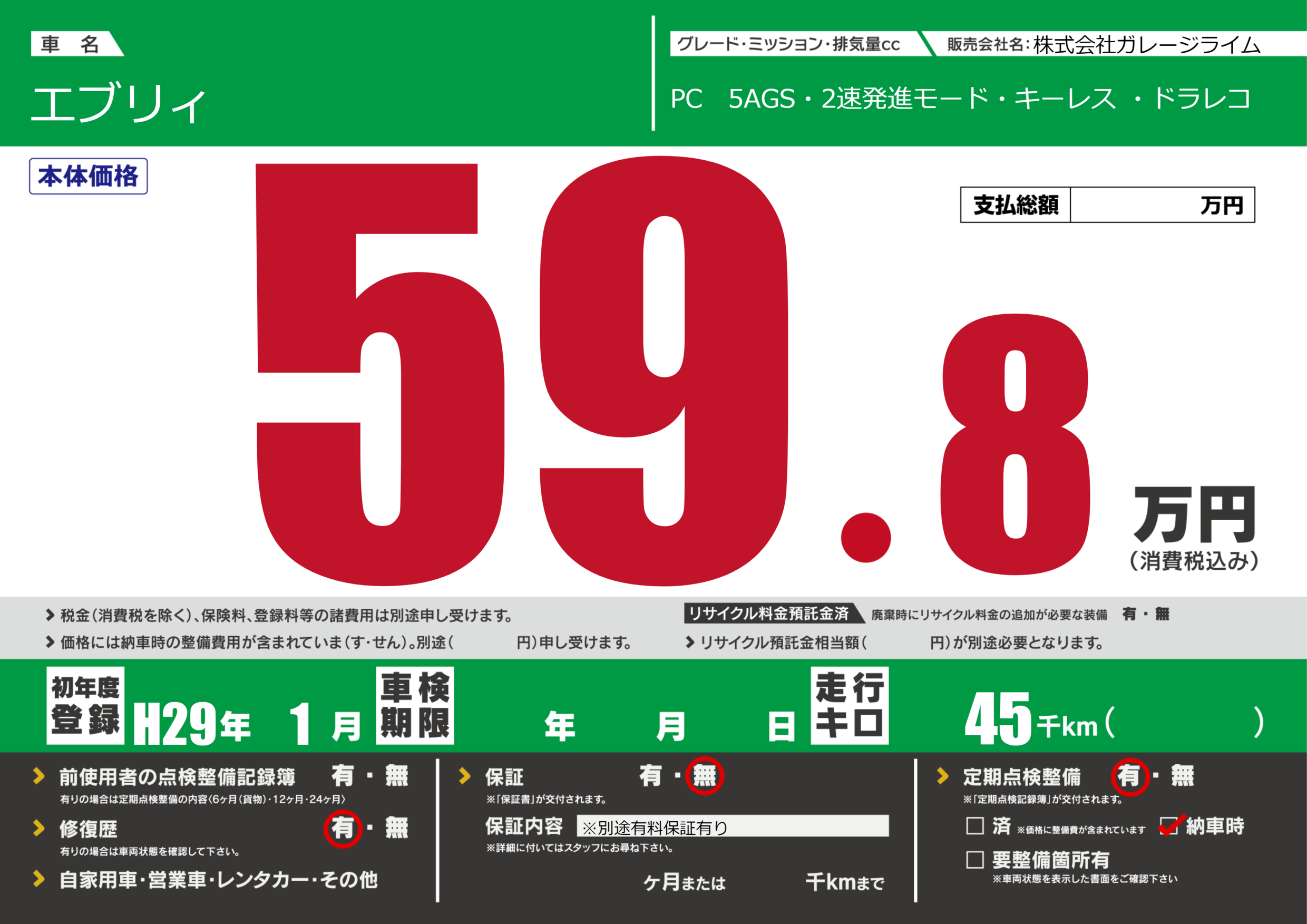 | 車検制限 | - 年 - 月 - 日 | ||