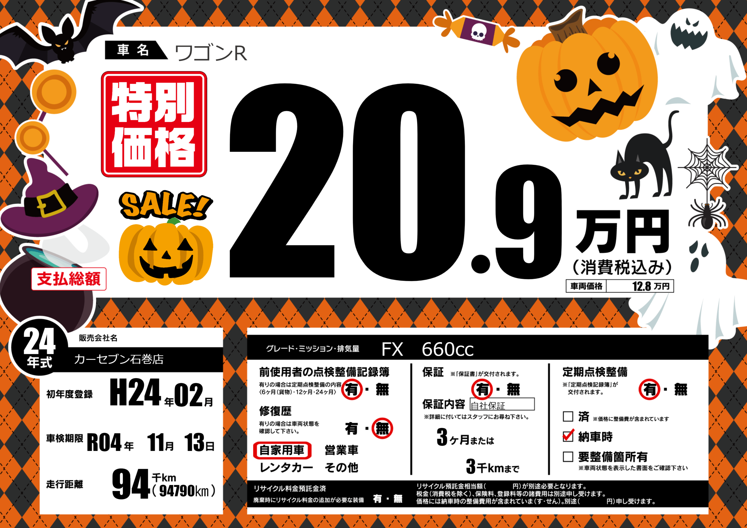 | 定期点検整備 | 定期点検整備あり 納車時あり | ||