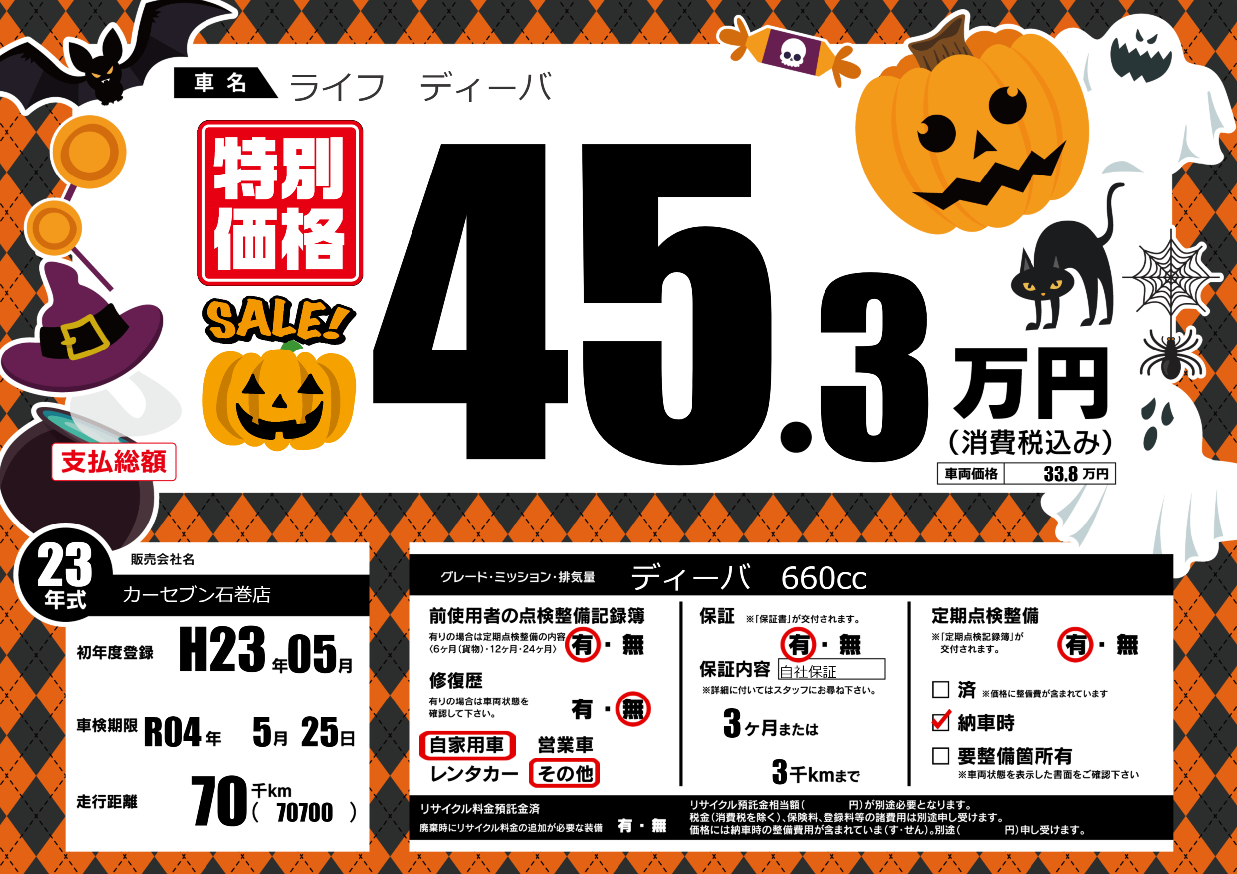 | 定期点検整備 | 定期点検整備あり 納車時あり | ||