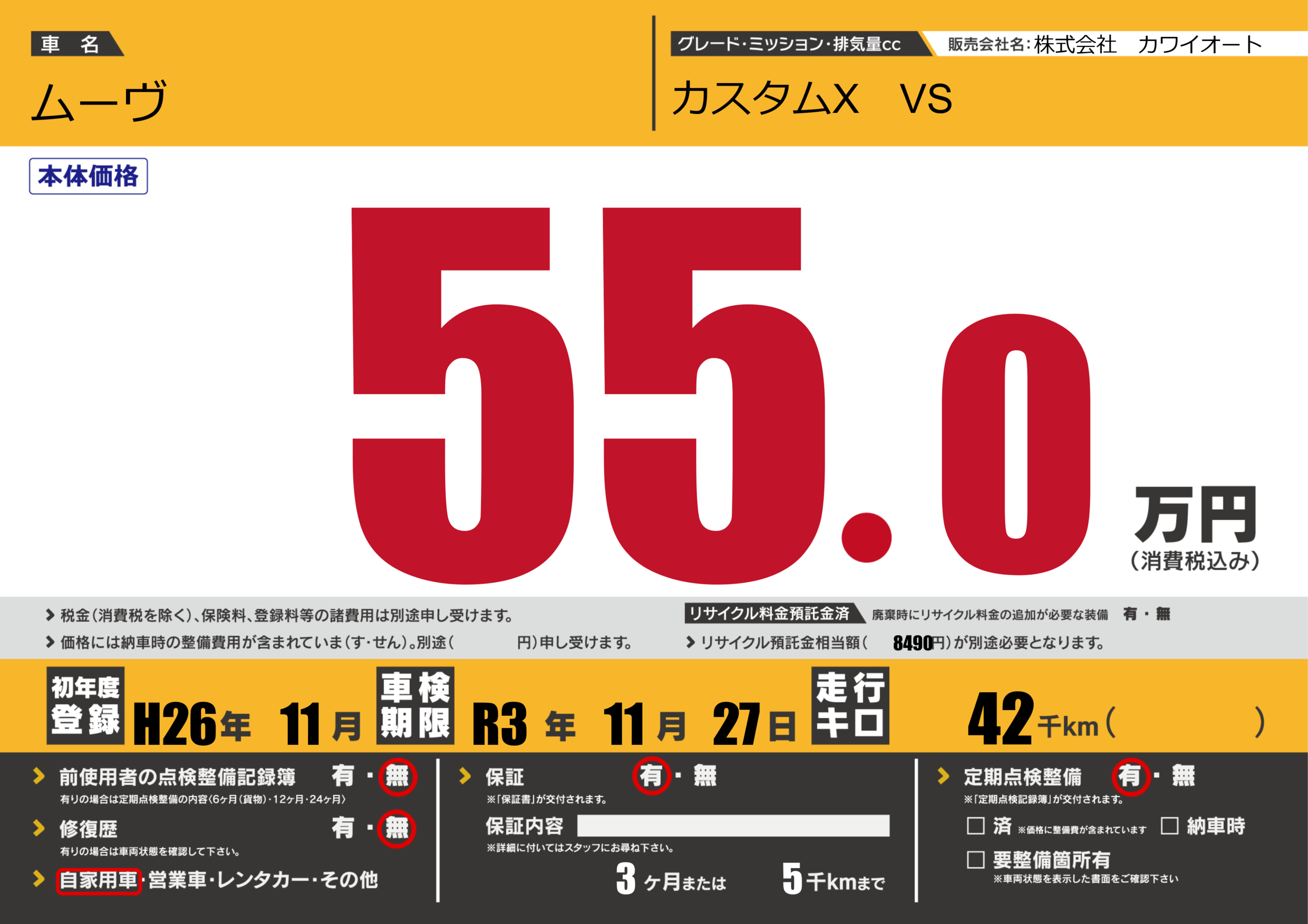 | 走行キロ | 4.2万km | 初年度登録 | H26年11月 |