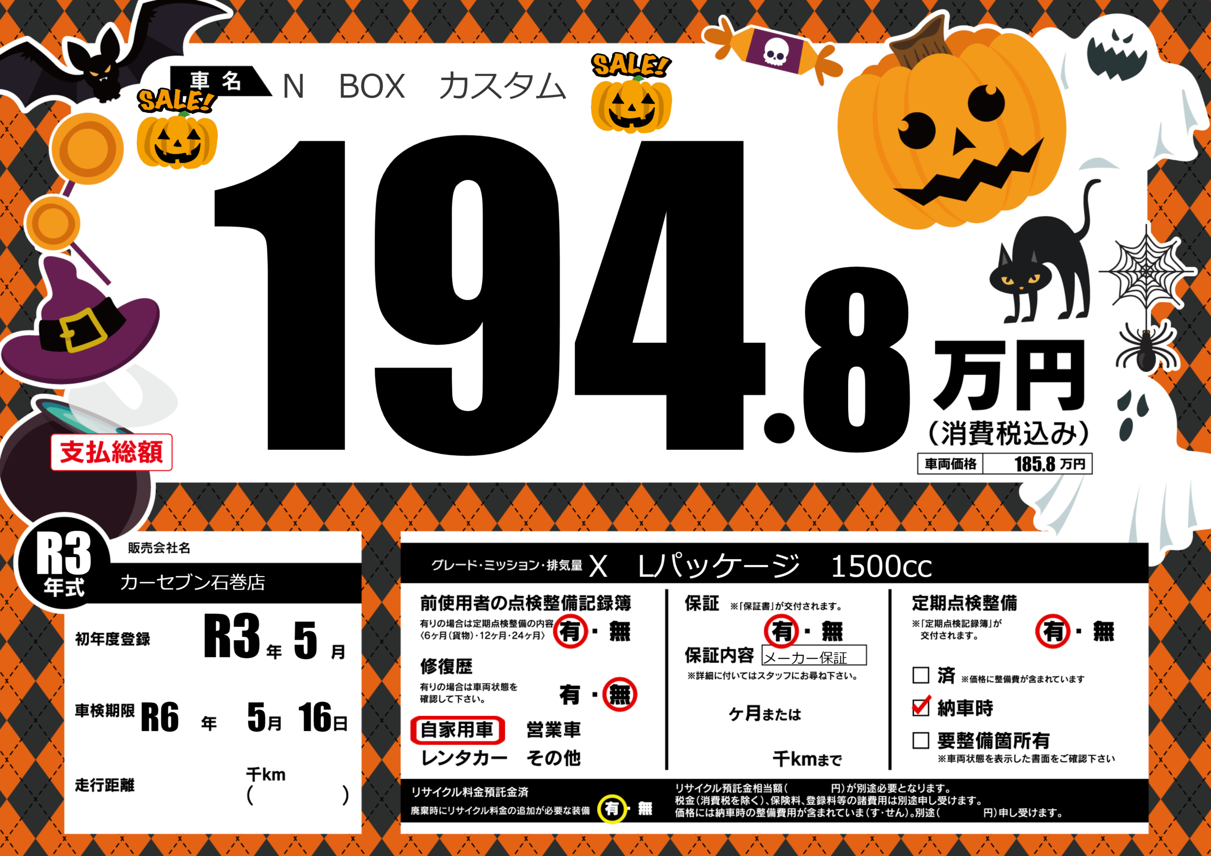 | 走行キロ | - | 初年度登録 | R3年5月 |