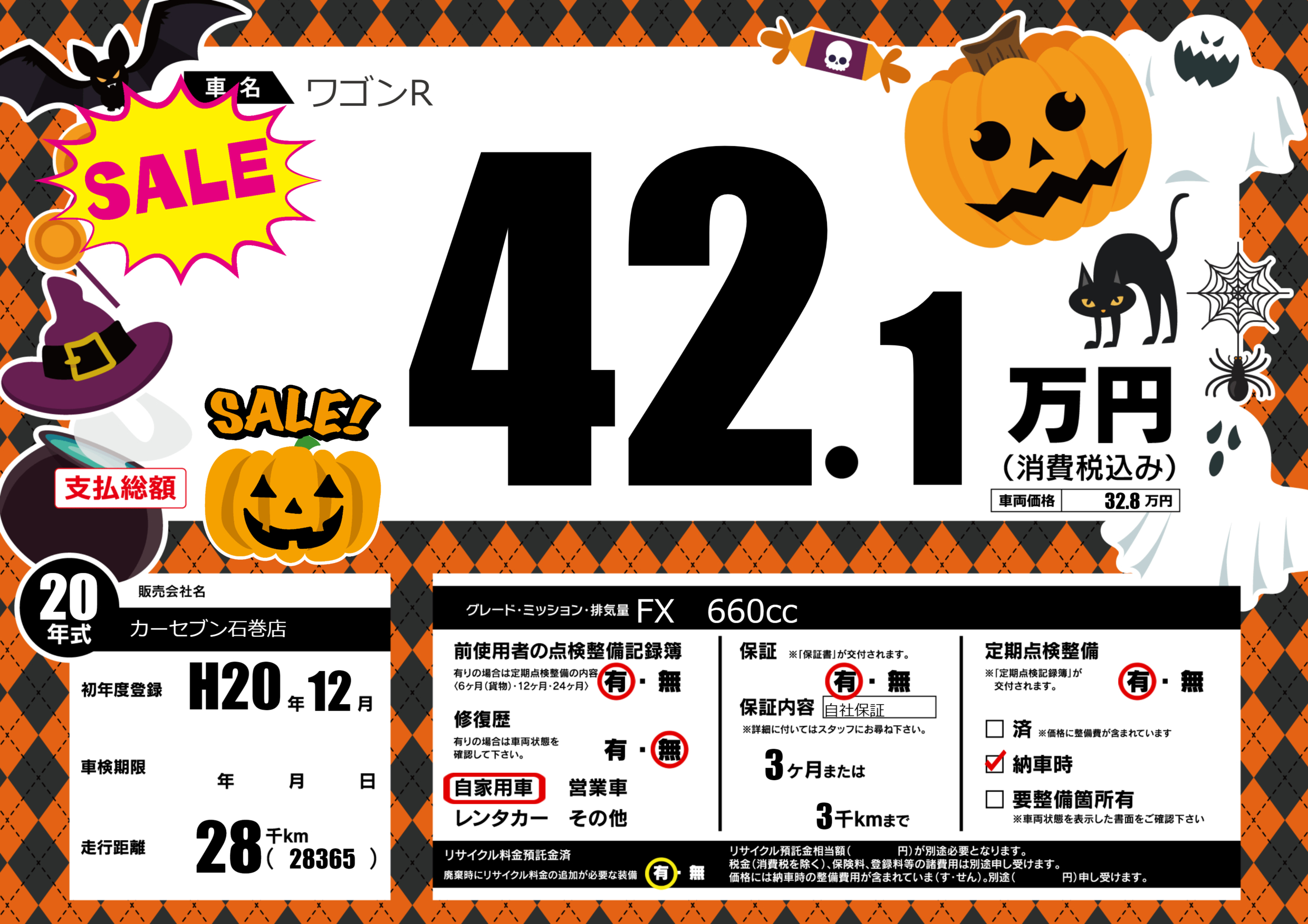 | 走行キロ | 2.8万km | 初年度登録 | H20年12月 |