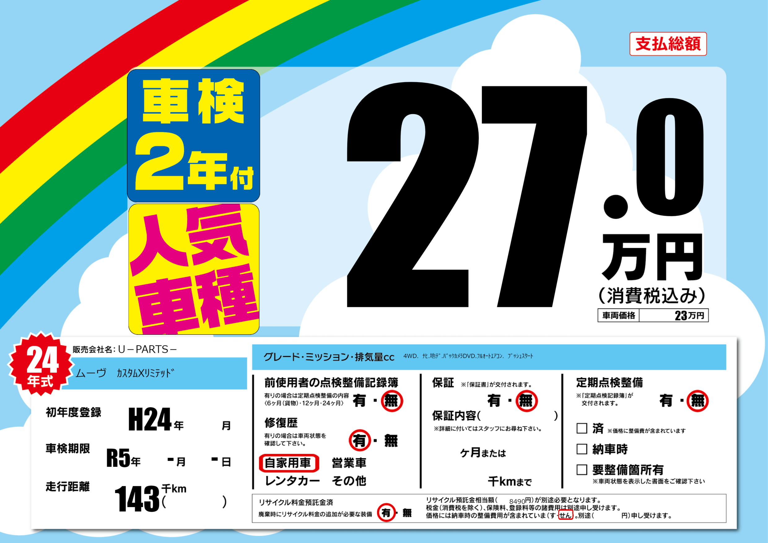 | 走行キロ | 14.3万km | 初年度登録 | H24年---月 |