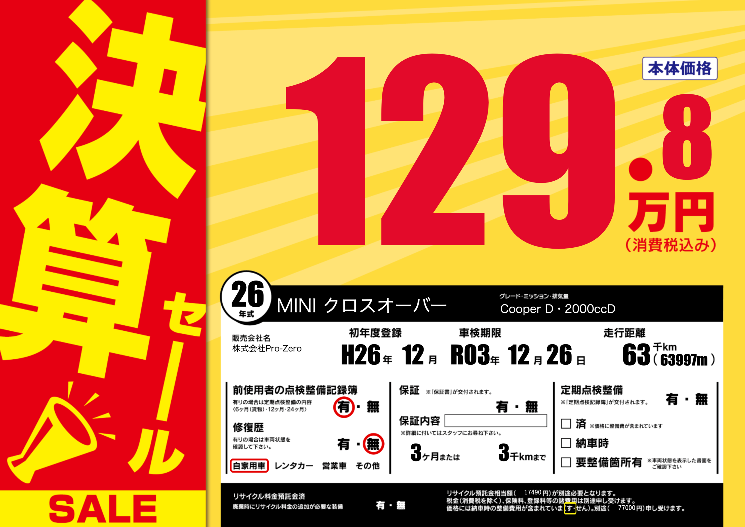 | 車検制限 | R03年 12月 26日 | ||