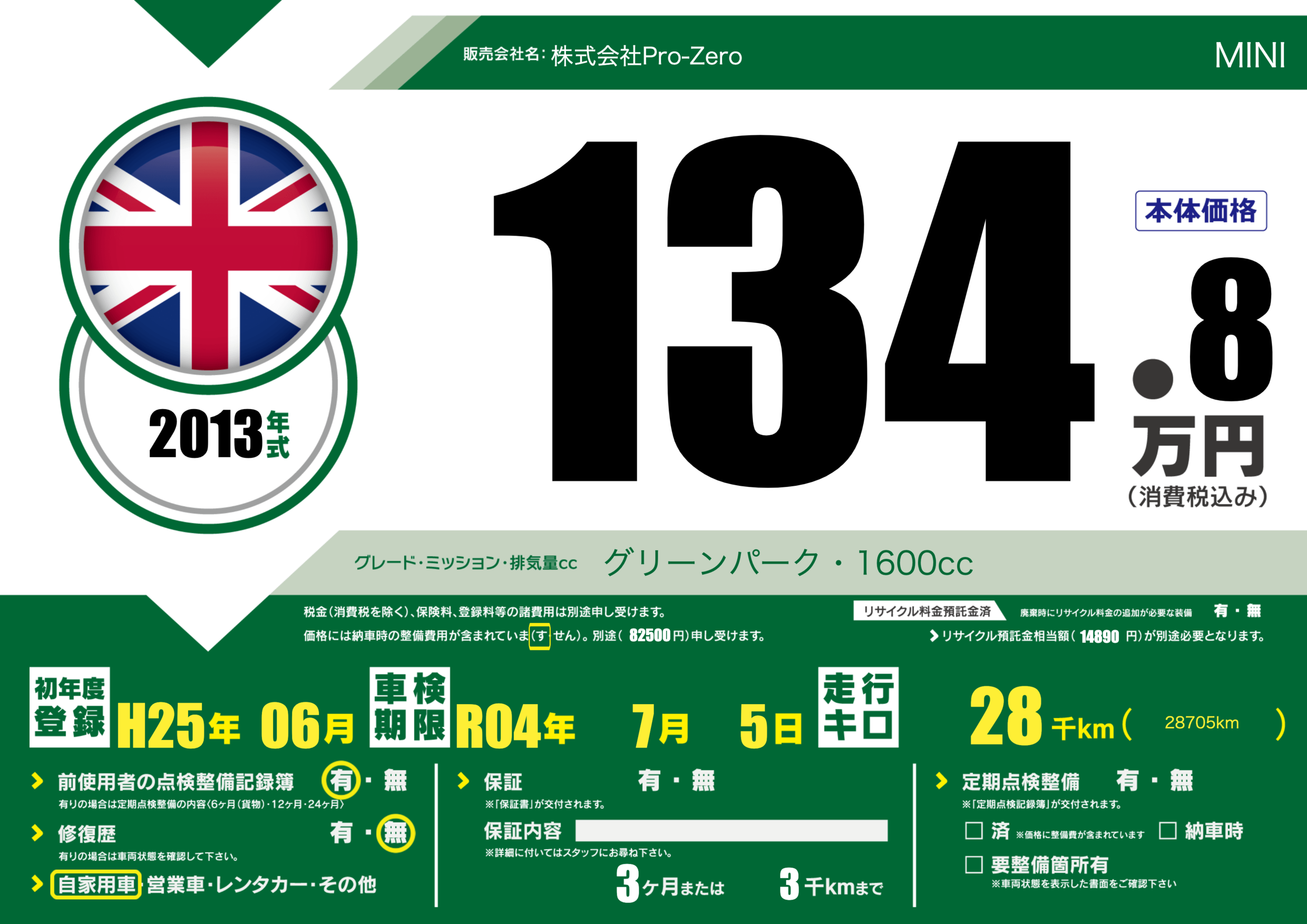 | 走行キロ | 2.8万km | 初年度登録 | H25年06月 |