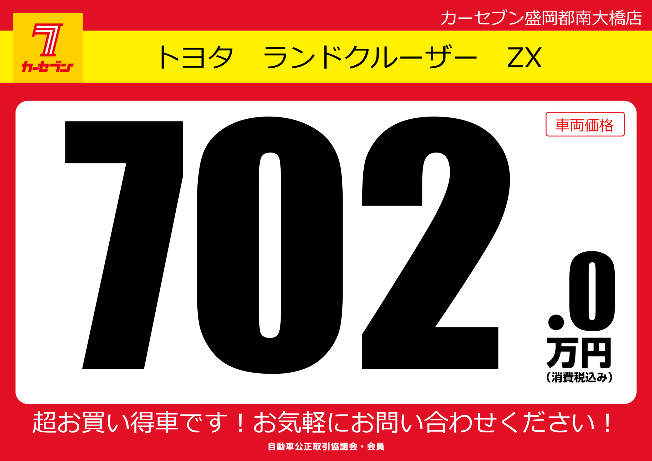 | 車名 | トヨタ ランドクルーザー ZX | グレード ミッション 排気量 |