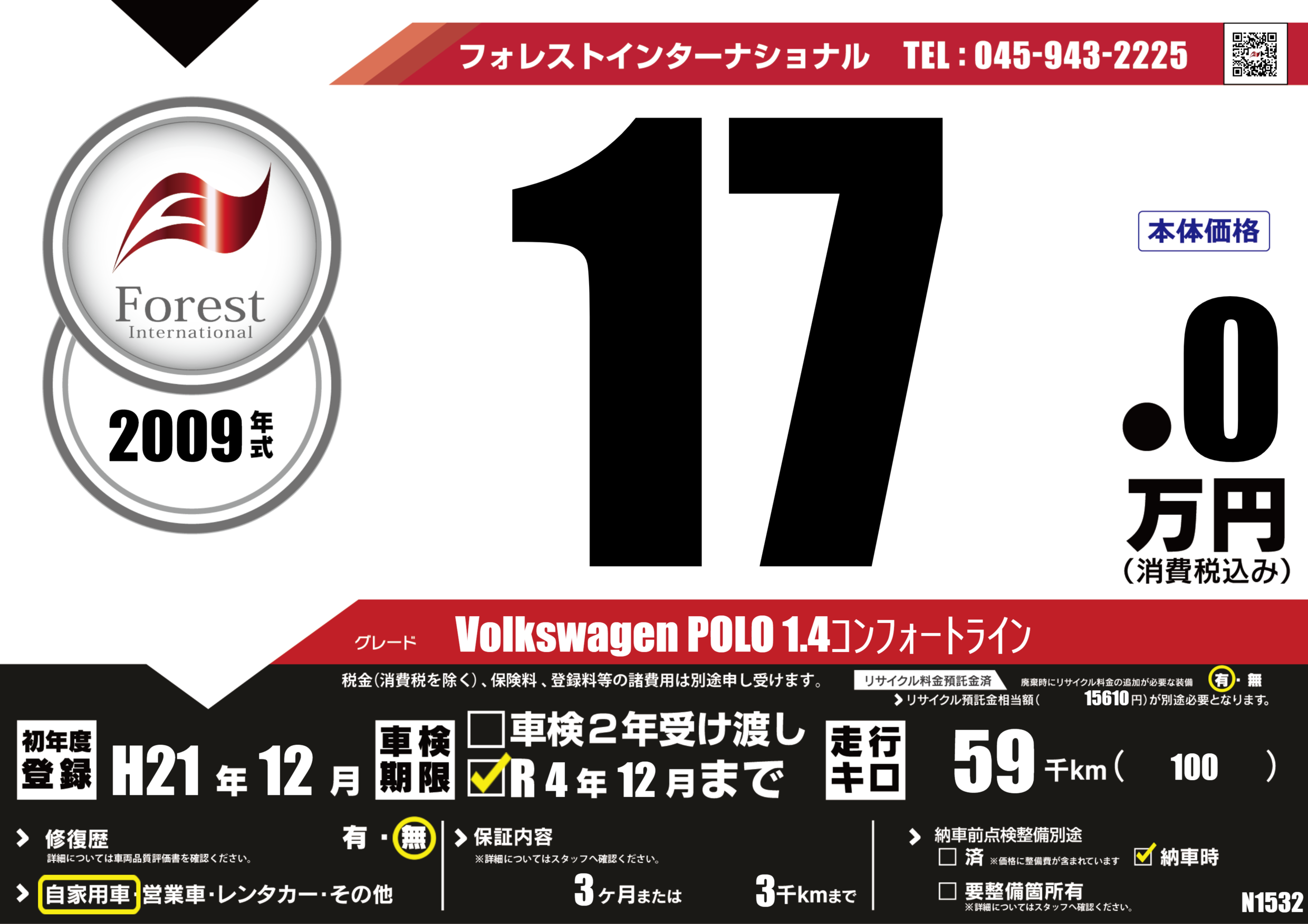 | 走行キロ | 5.9万km | 初年度登録 | H21年12月 |