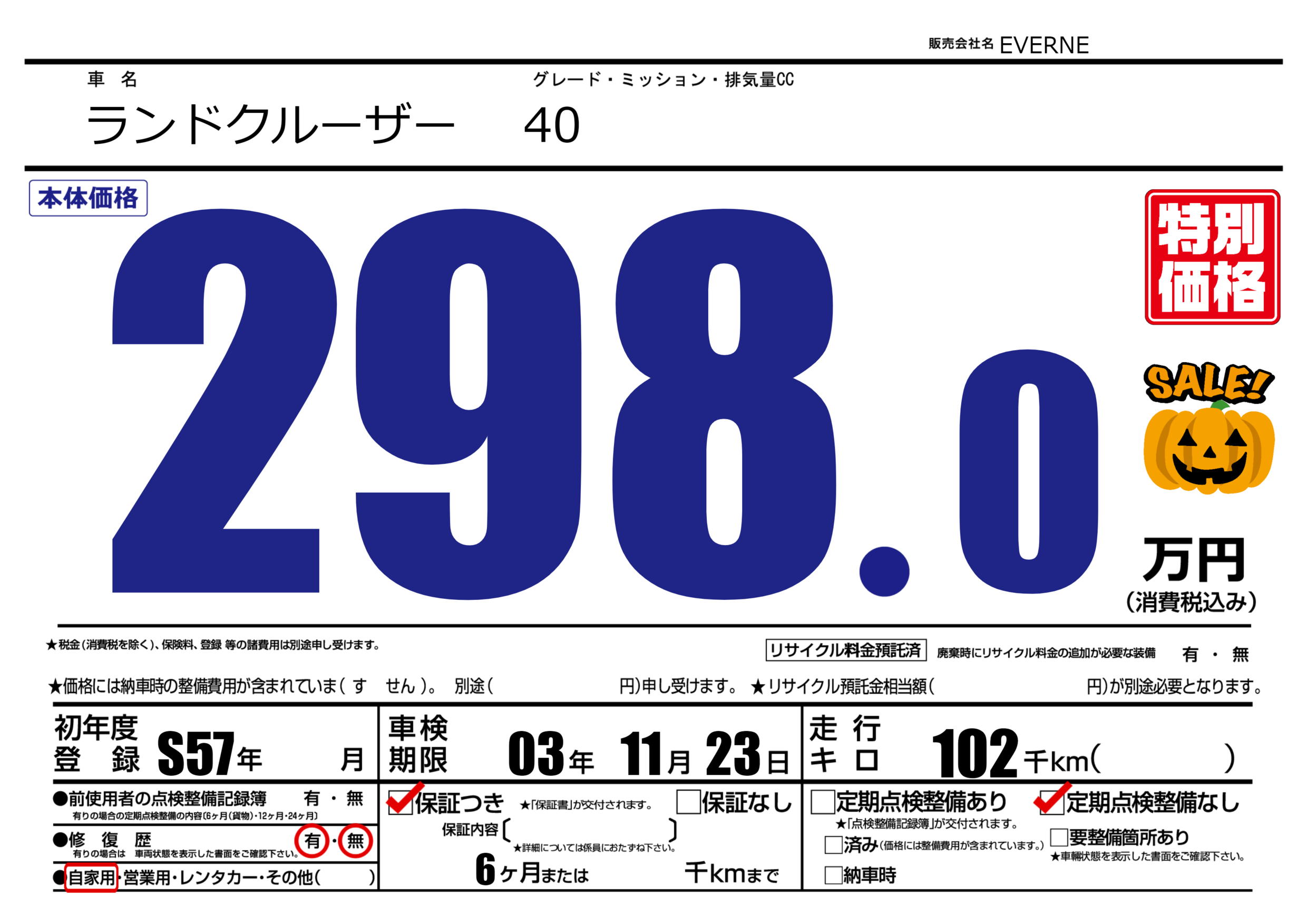 | 車名 | ランドクルーザー | グレード ミッション 排気量 |