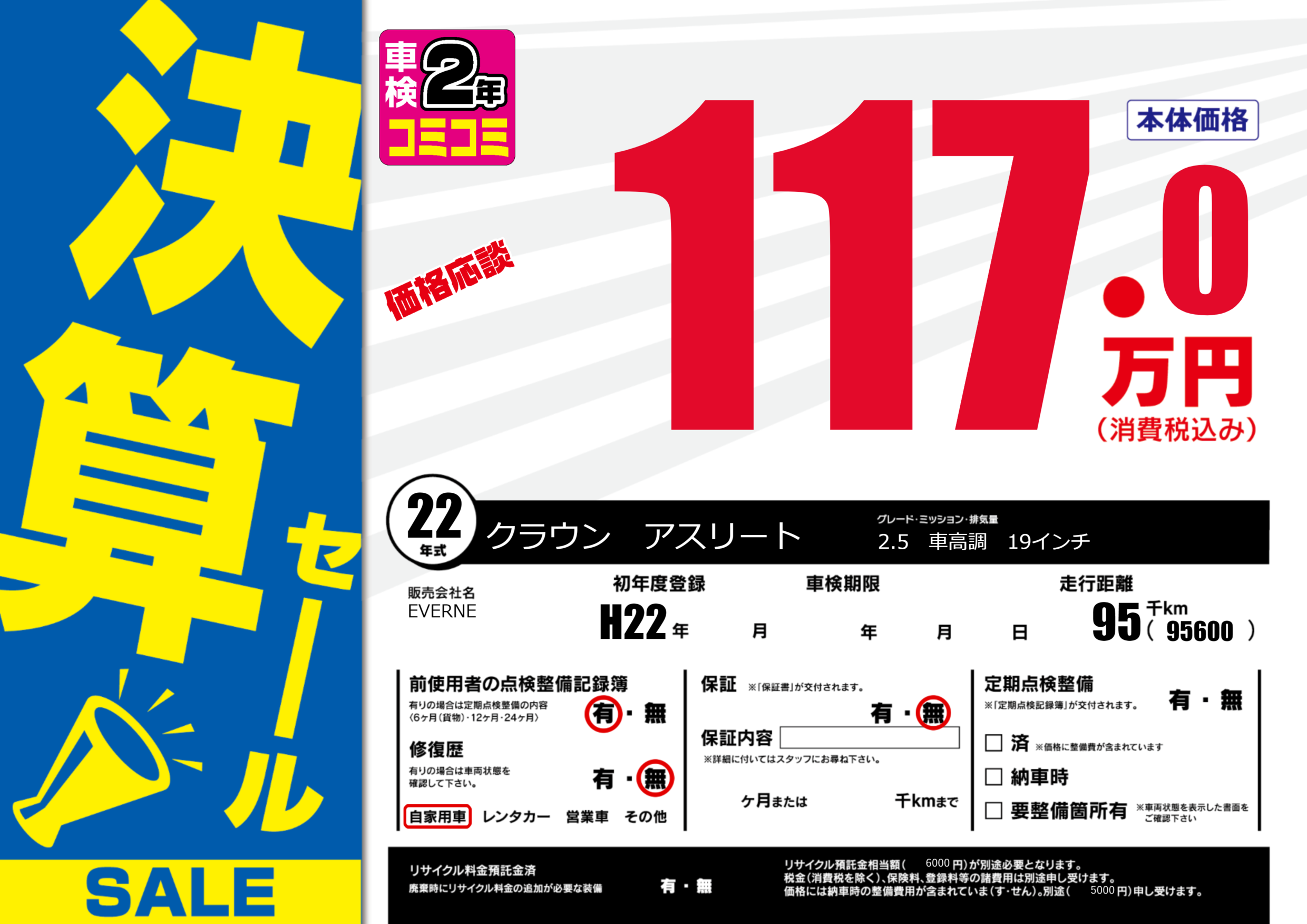 | 車名 | クラウン アスリート | グレード ミッション 排気量 |
