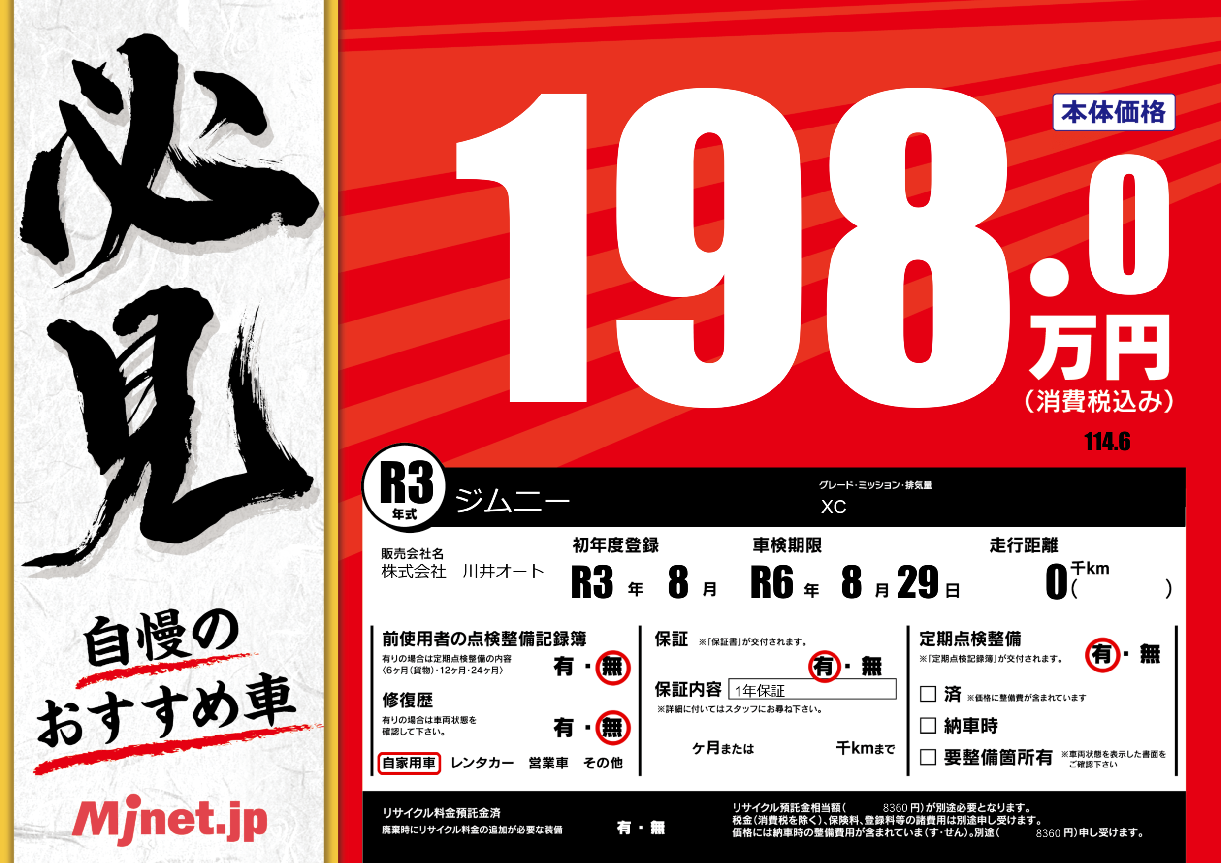 | 車名 | ジムニー | グレード ミッション 排気量 |