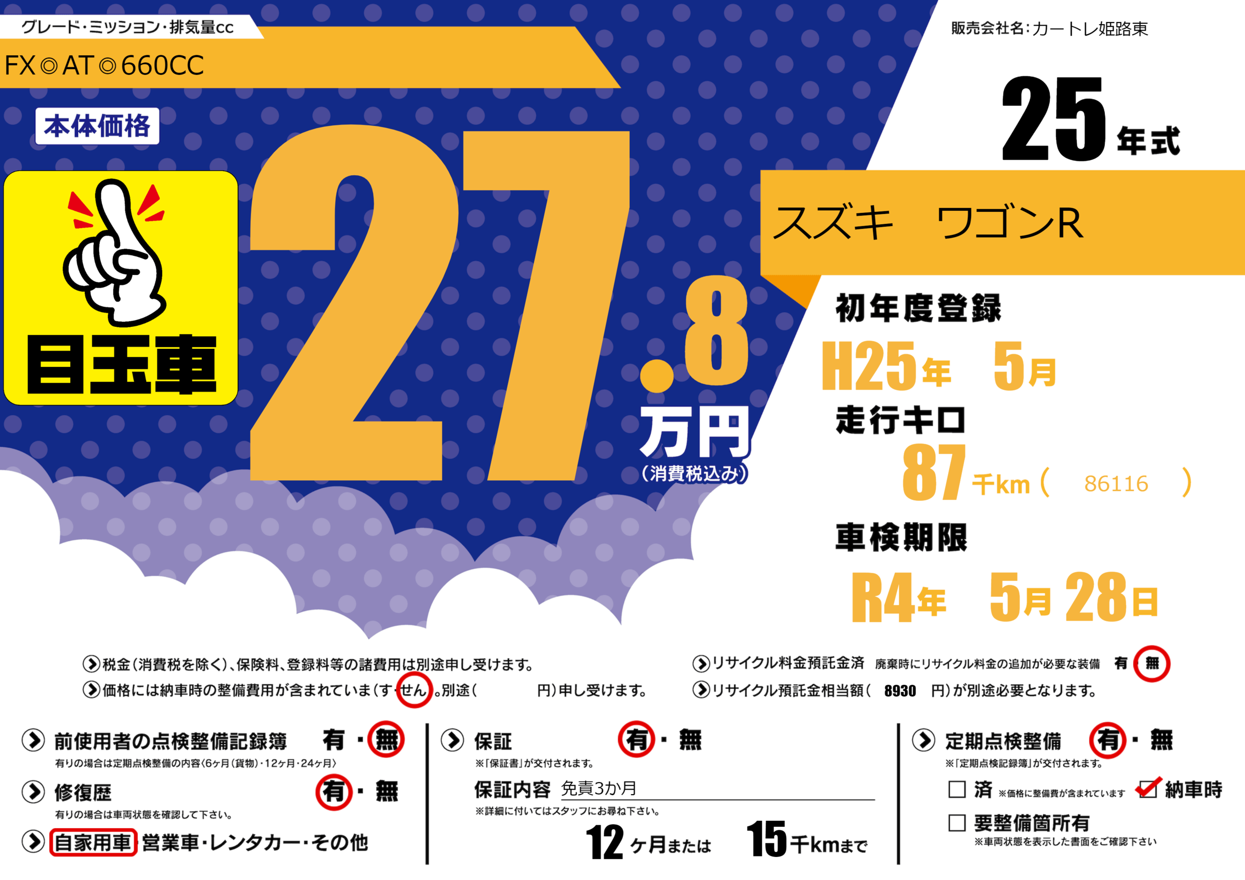 なし | 車検制限 | R4年5月28月 |