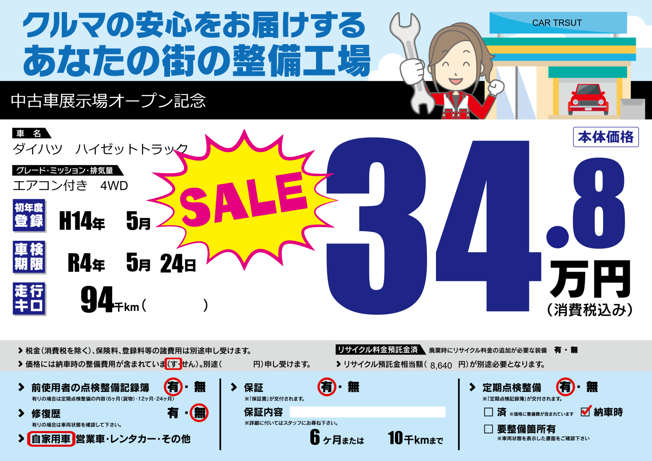 | 走行キロ | 9.4万km | 初年度登録 | H14年5月 |