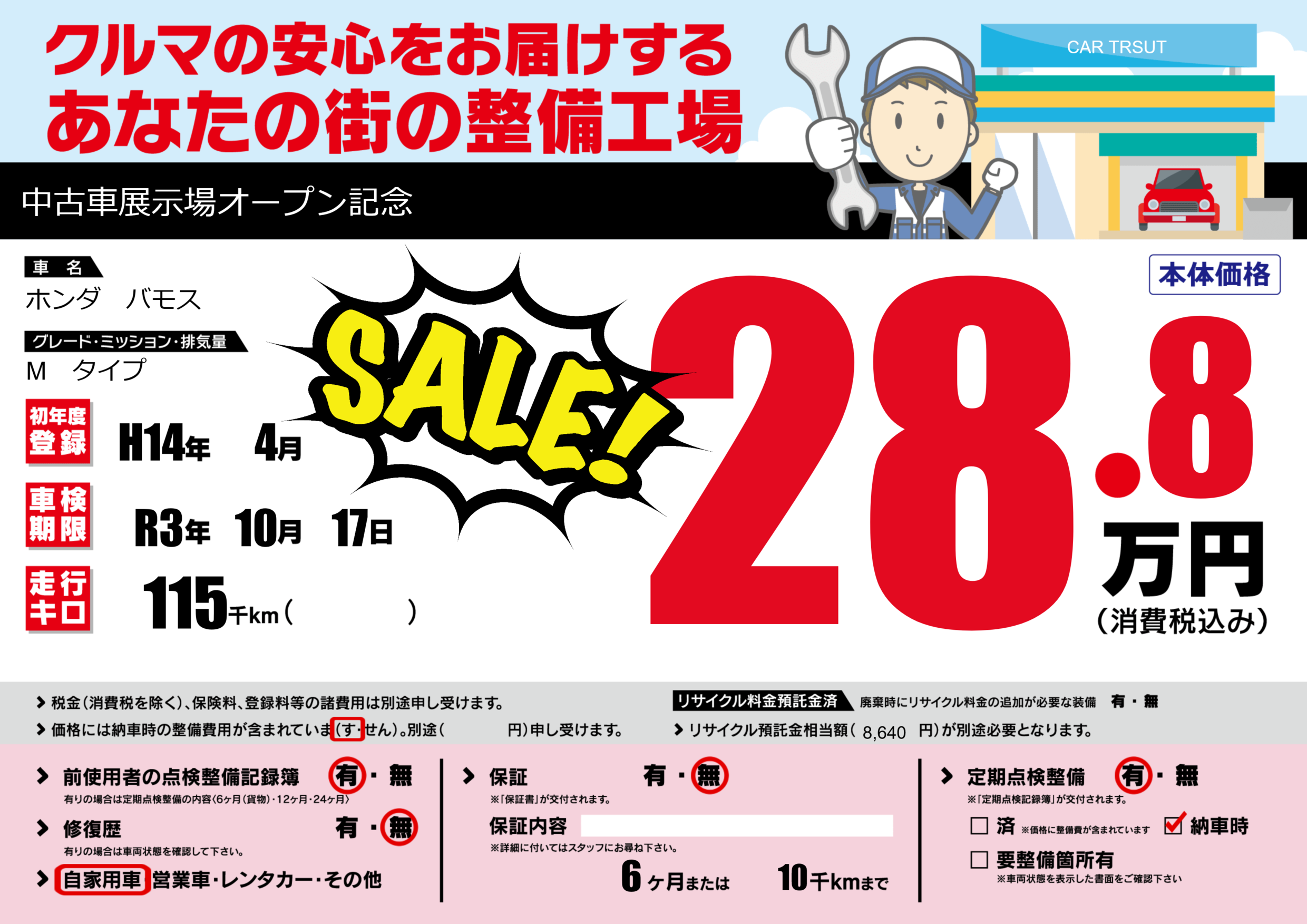 | 車名 | ホンダ バモス | グレード ミッション 排気量 |