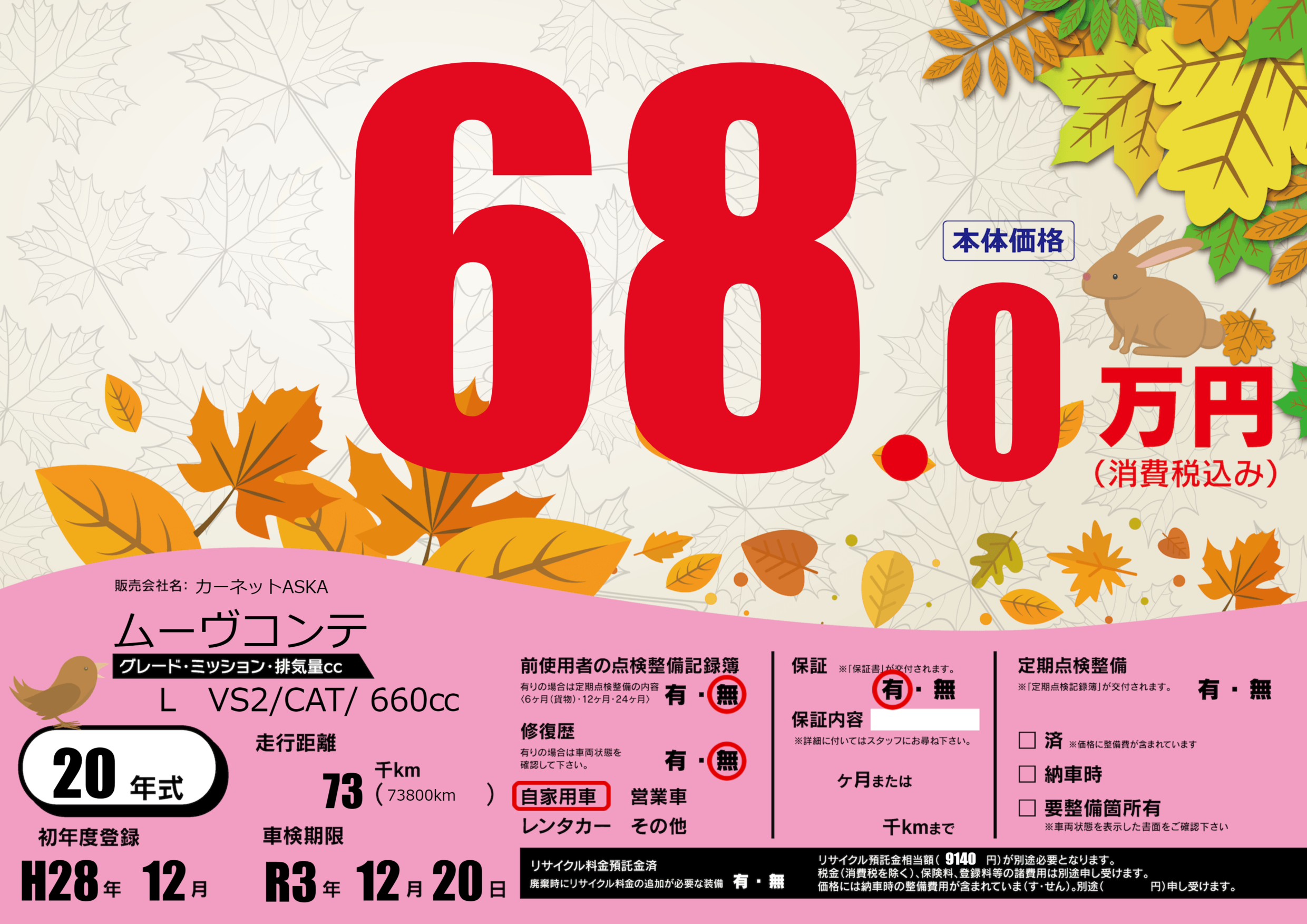 なし | 車検制限 | R3年12月20月 |