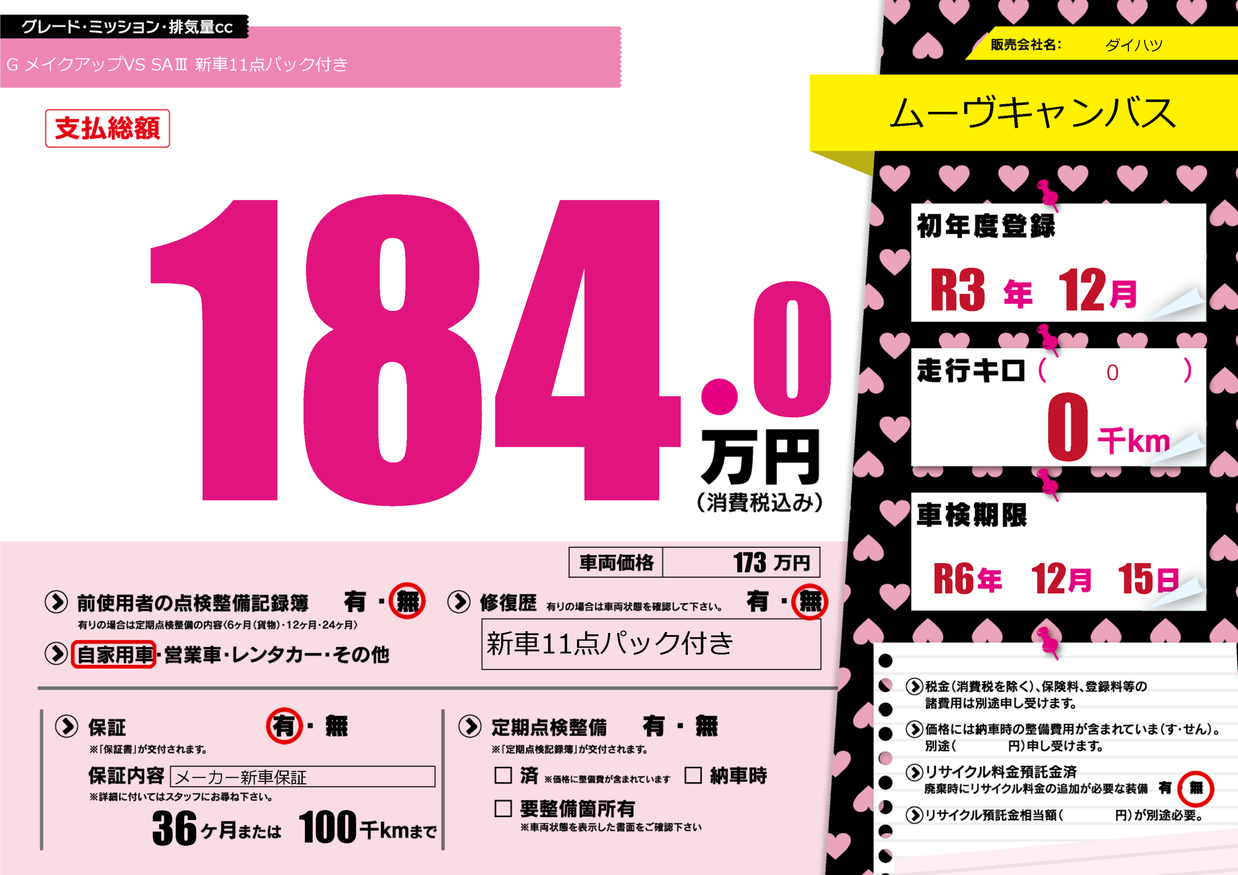 | 車名 | ムーヴキャンバス | グレード ミッション 排気量 |