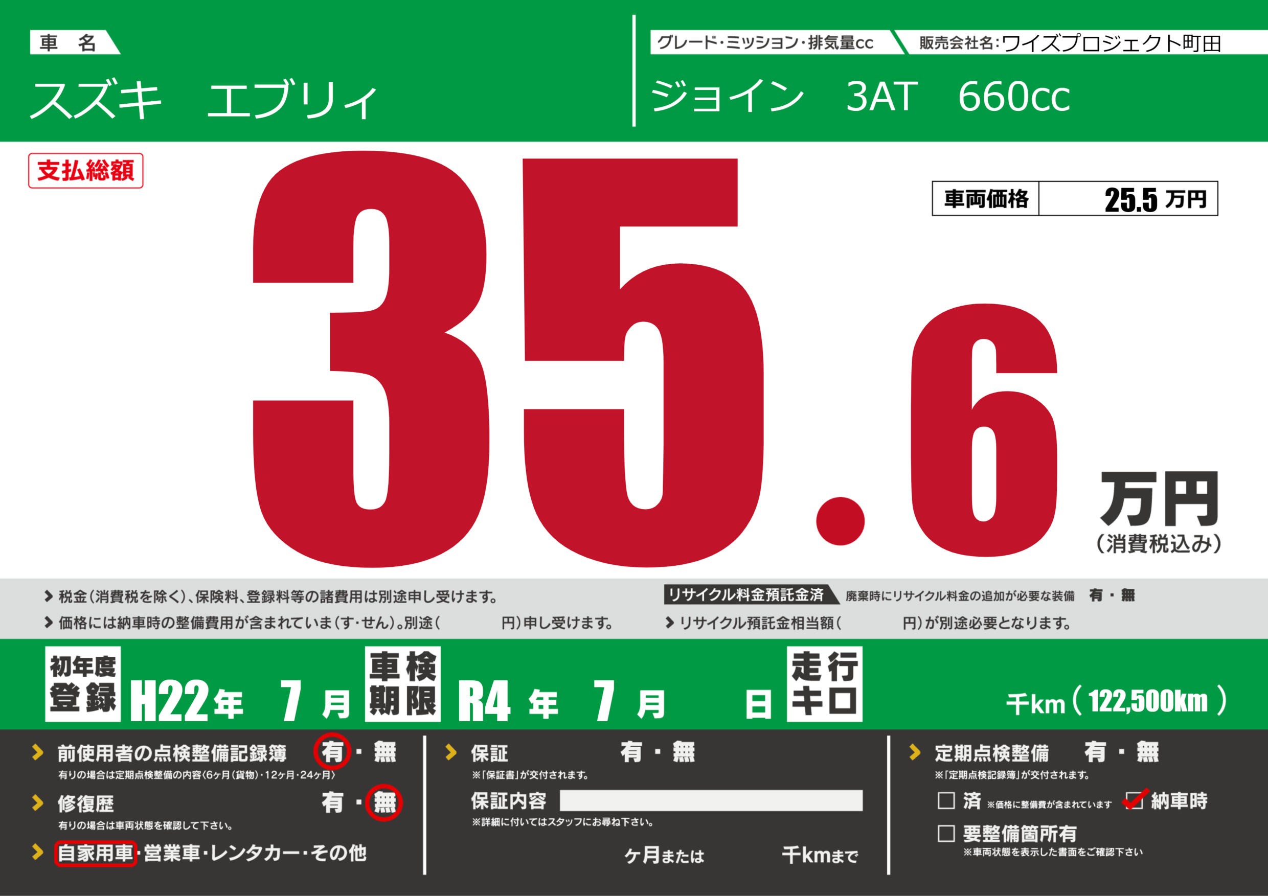 なし | 車検制限 | R4年7月---月 |