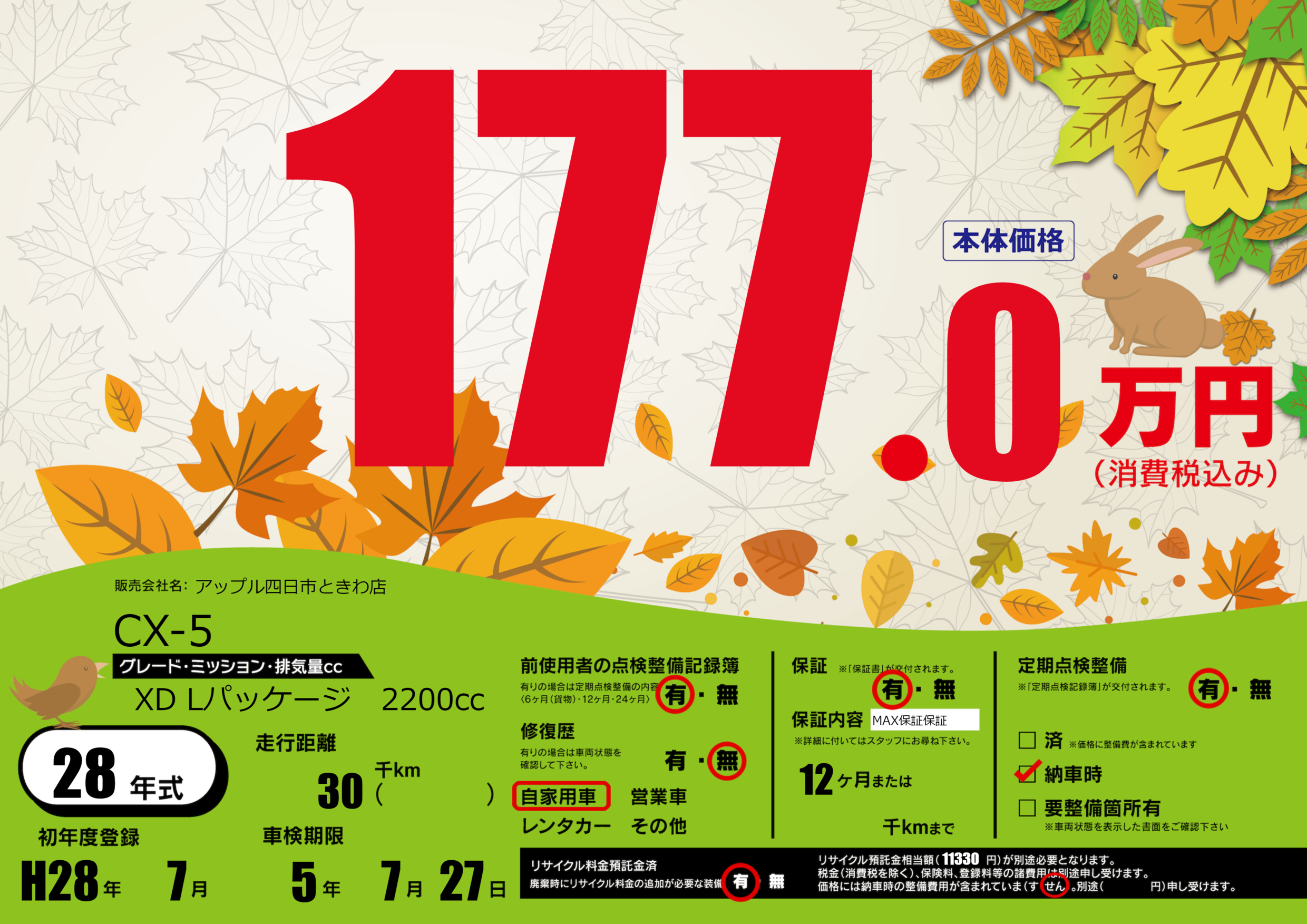 | 車名 | CX-5 | グレード ミッション 排気量 |