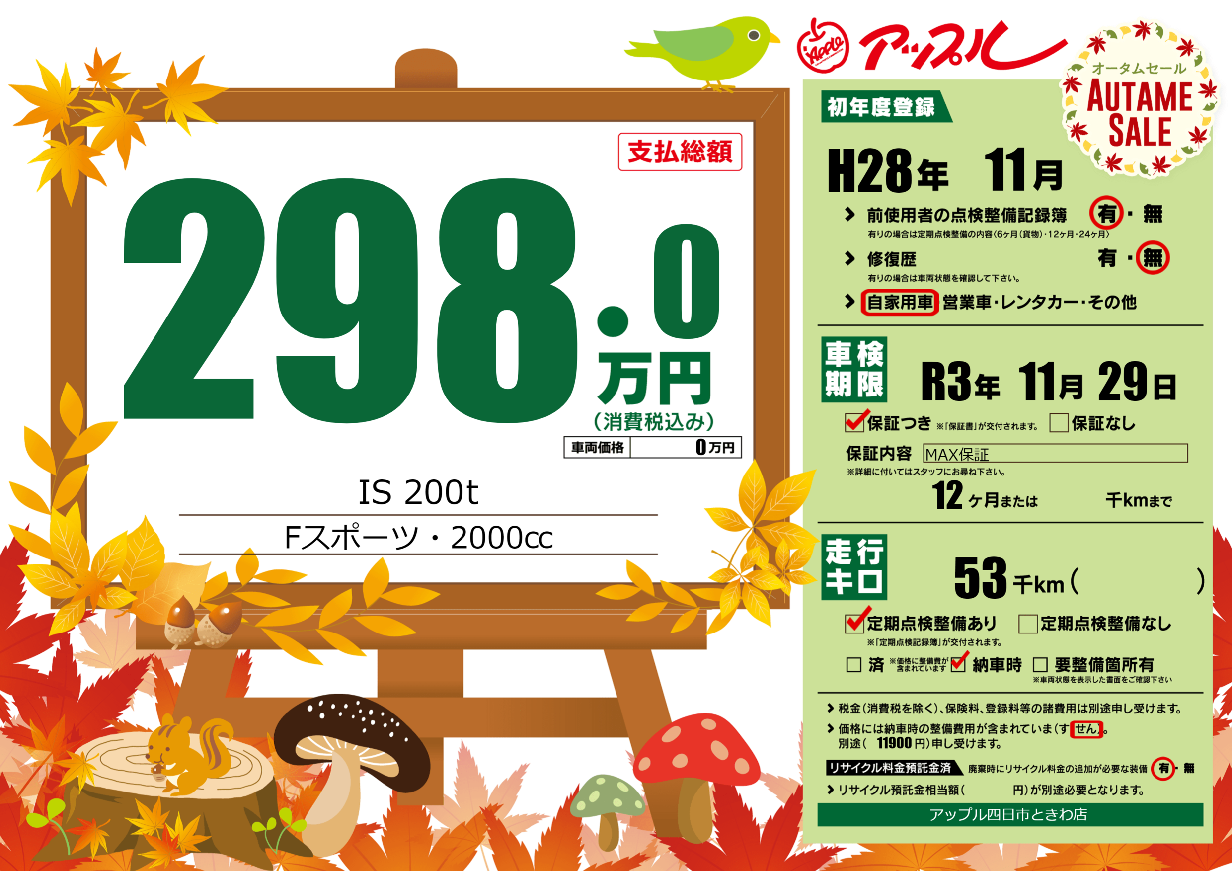 | 車名 | IS 200t | グレード ミッション 排気量 |