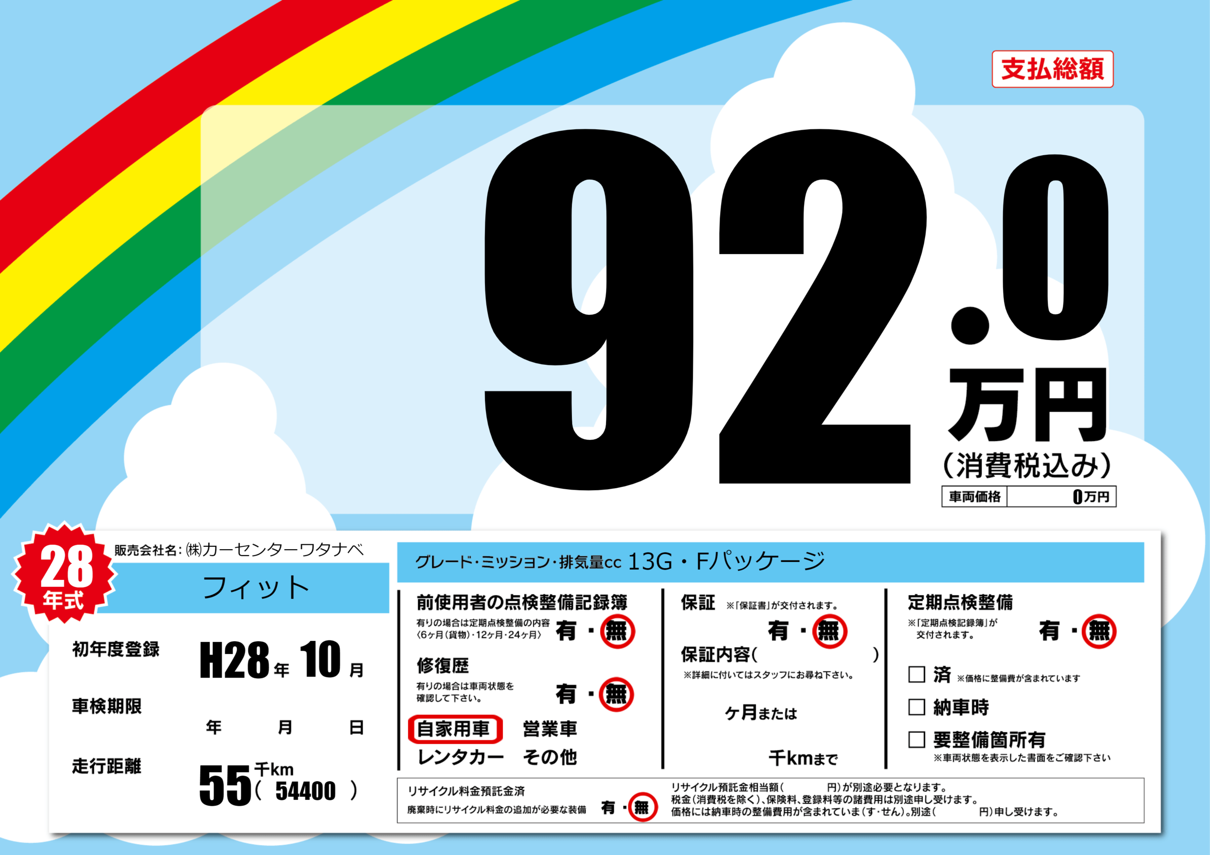 | 走行キロ | 5.5万km | 初年度登録 | H28年10月 |