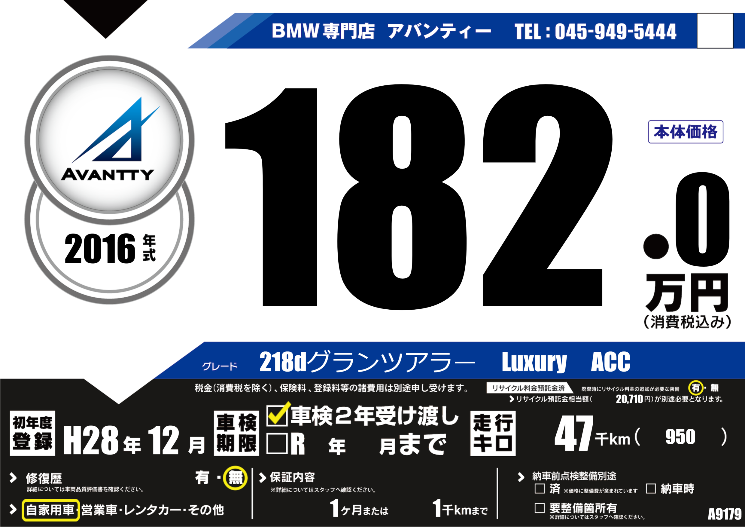 | 走行キロ | 4.7万km | 初年度登録 | H28年12月 |
