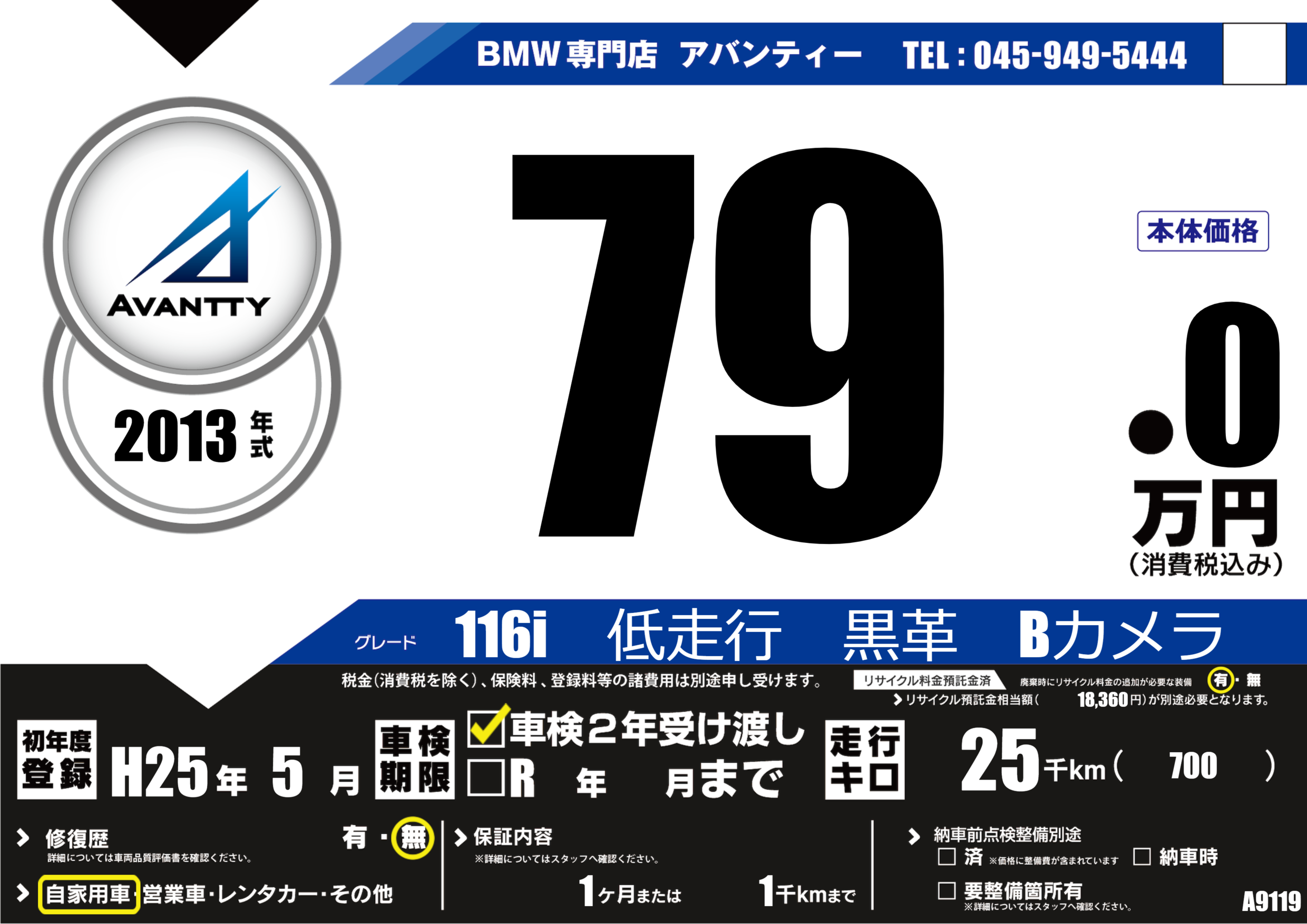 116i 低走行 黒革 Bカメラ |