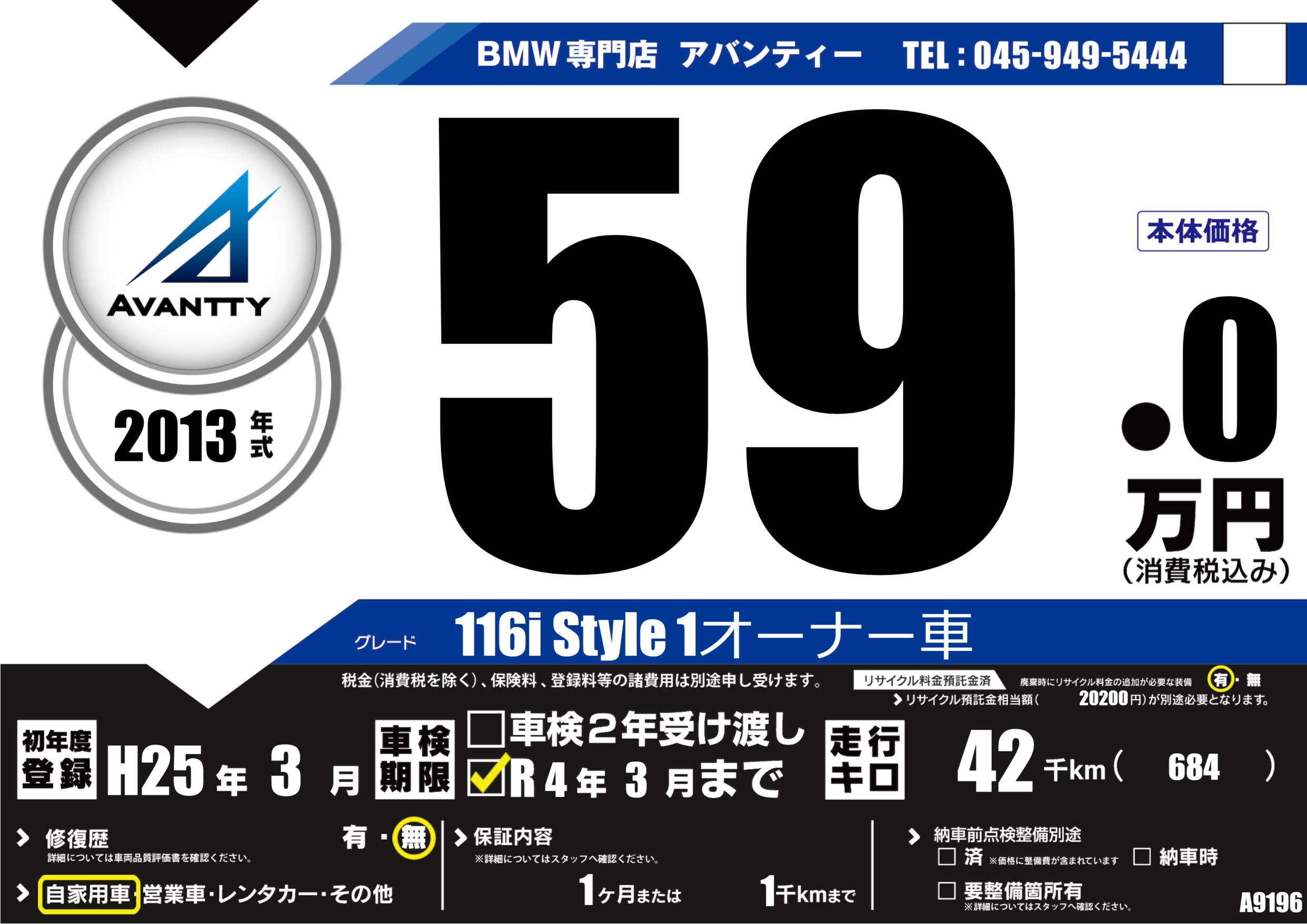 | 走行キロ | 4.2万km | 初年度登録 | H25年3月 |