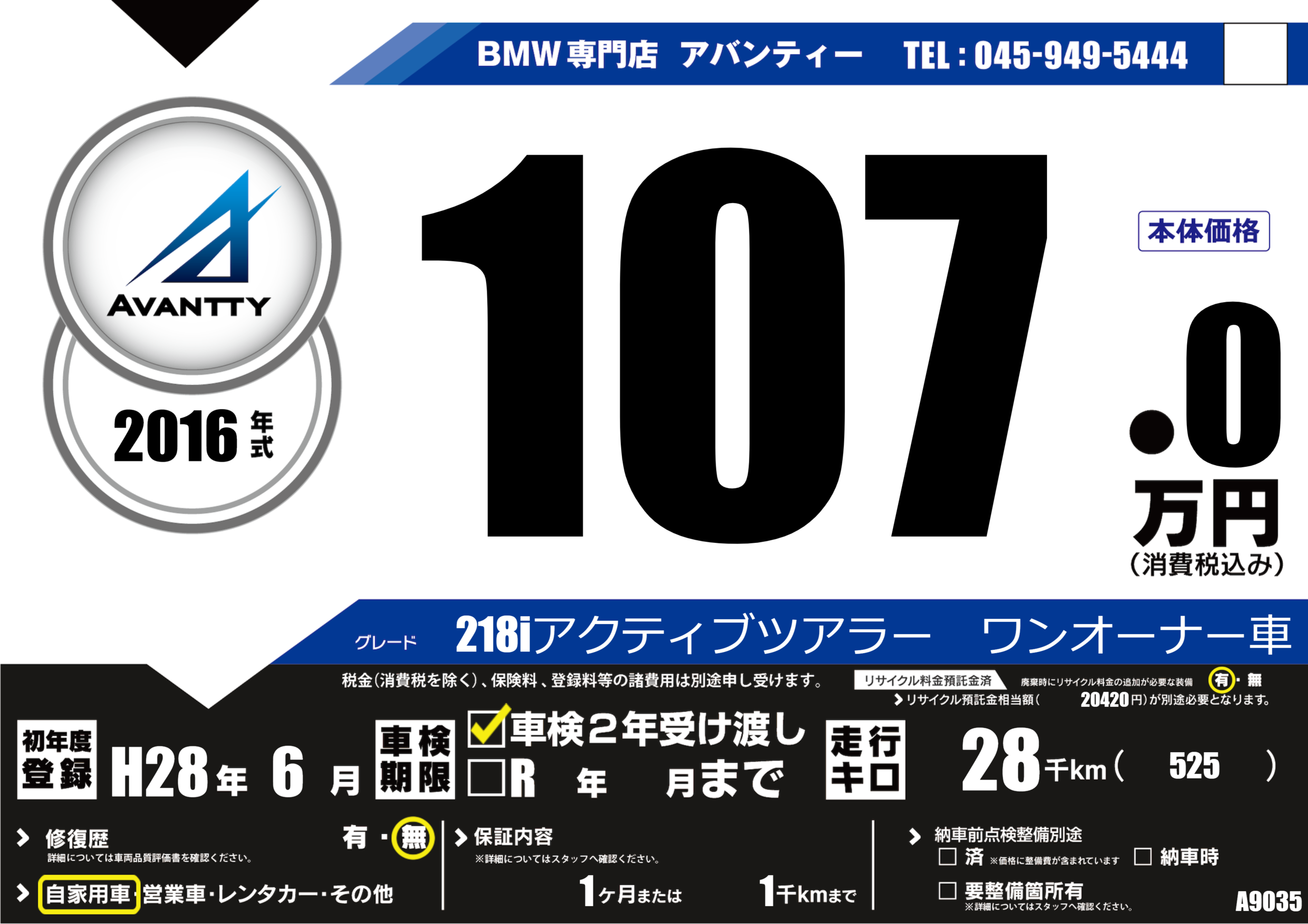 | 走行キロ | 2.8万km | 初年度登録 | H28年6月 |