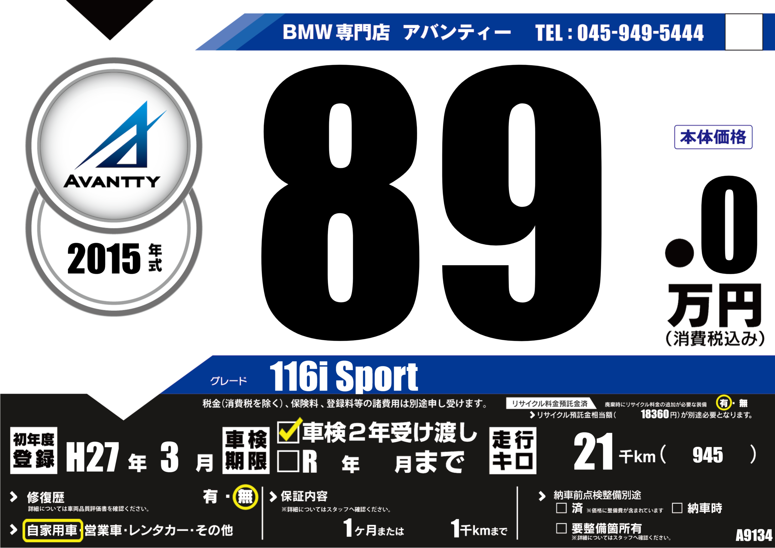 | 走行キロ | 2.1万km | 初年度登録 | H27年3月 |