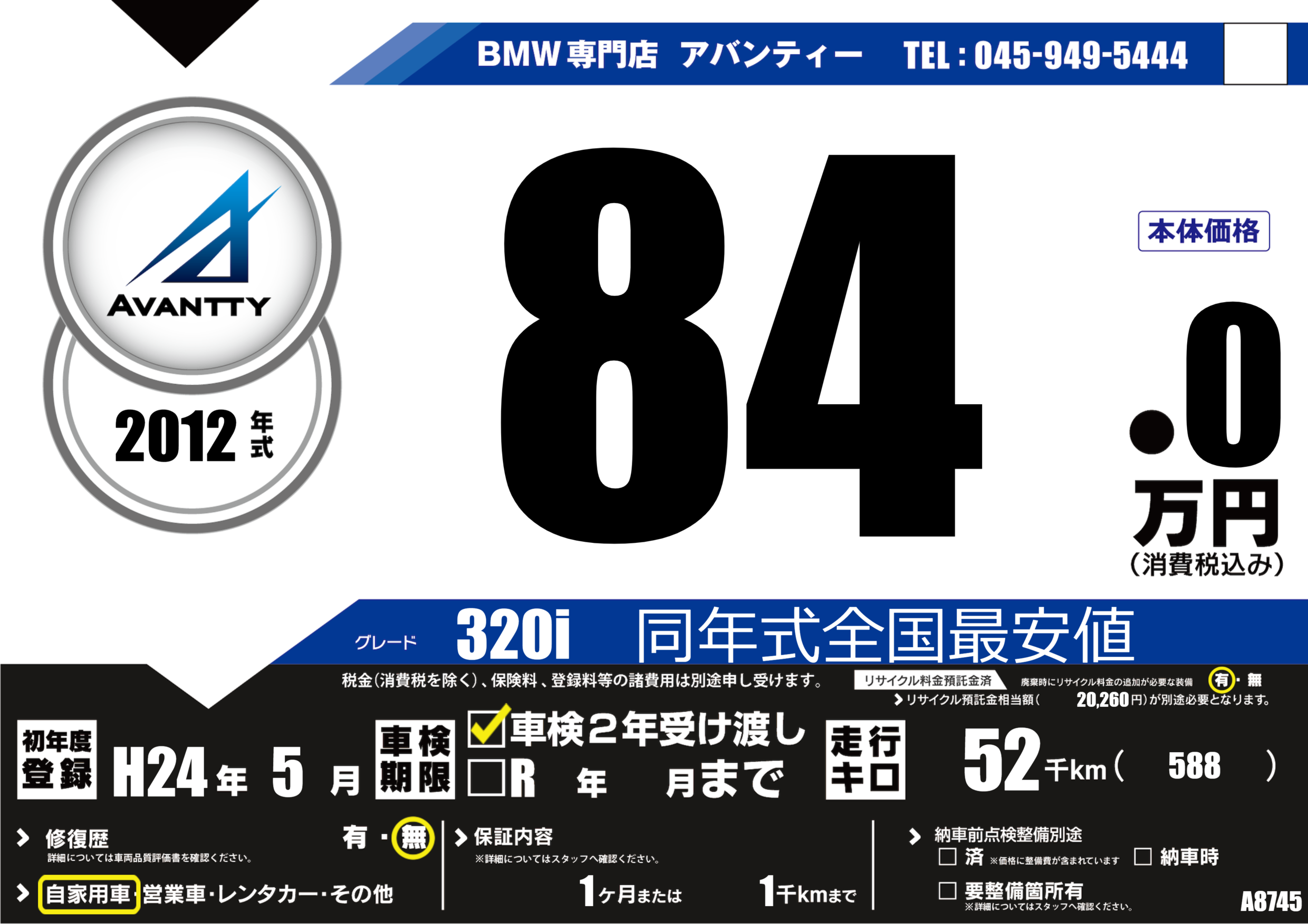 | 走行キロ | 5.2万km | 初年度登録 | H24年5月 |