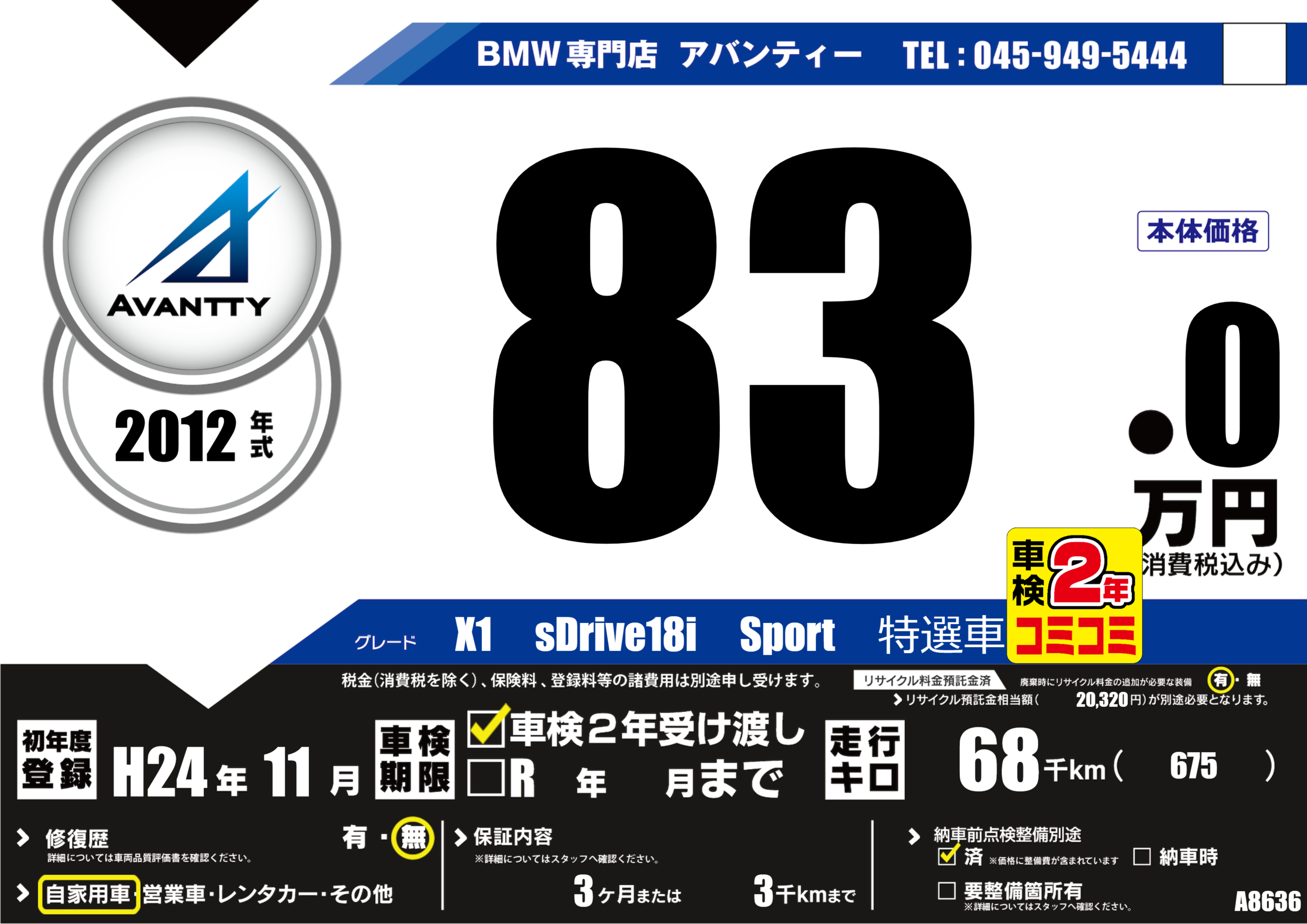 | 定期点検整備 | 定期点検整備済み | ||