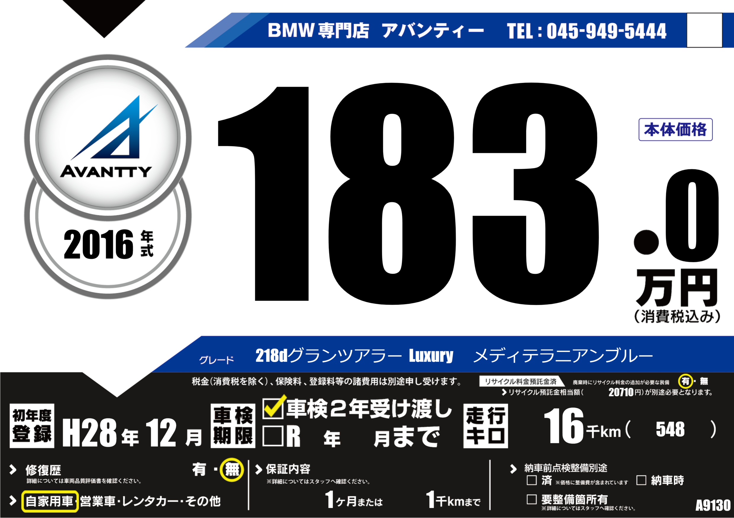 | 走行キロ | 1.6万km | 初年度登録 | H28年12月 |