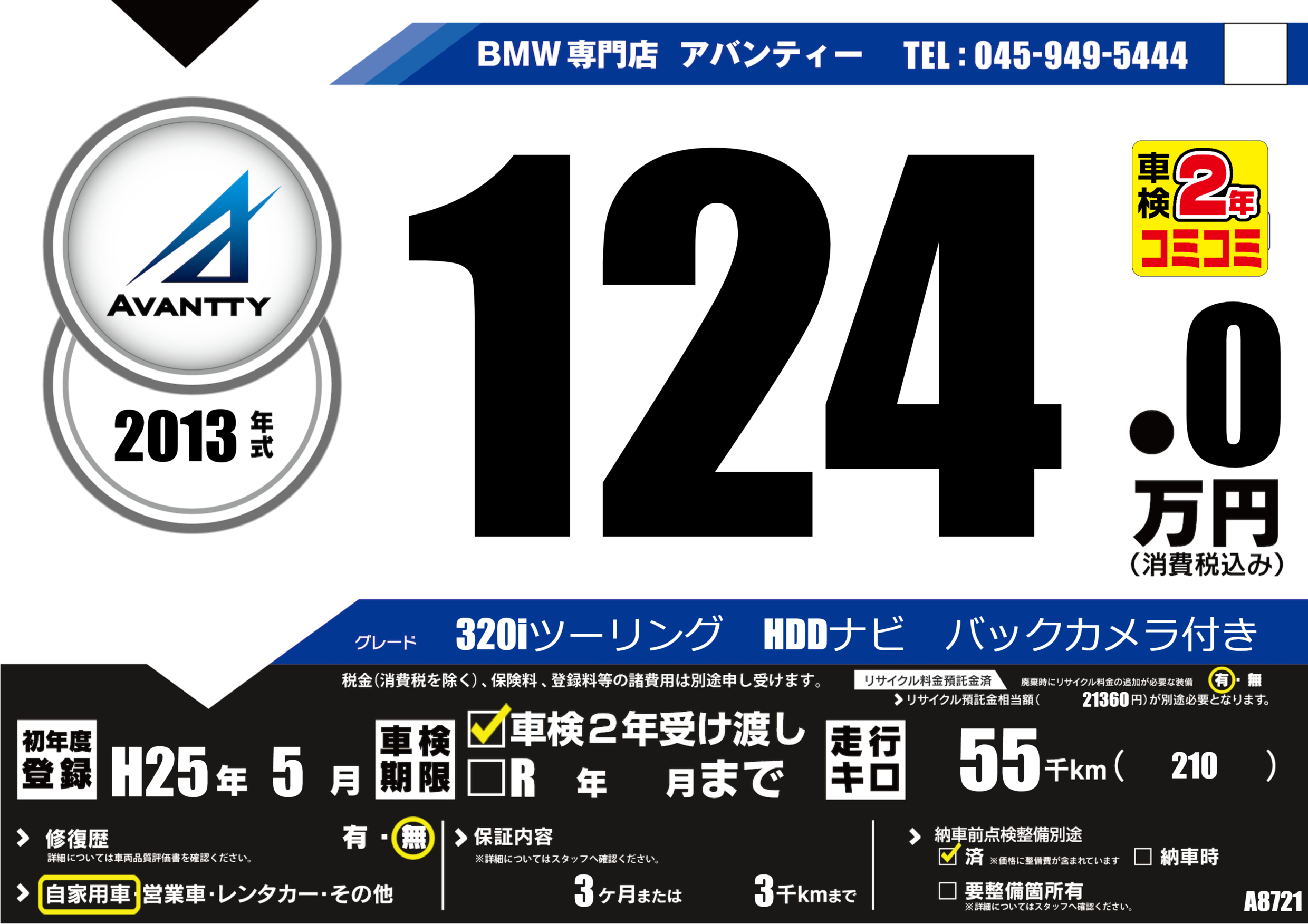 | 走行キロ | 5.5万km | 初年度登録 | H25年5月 |