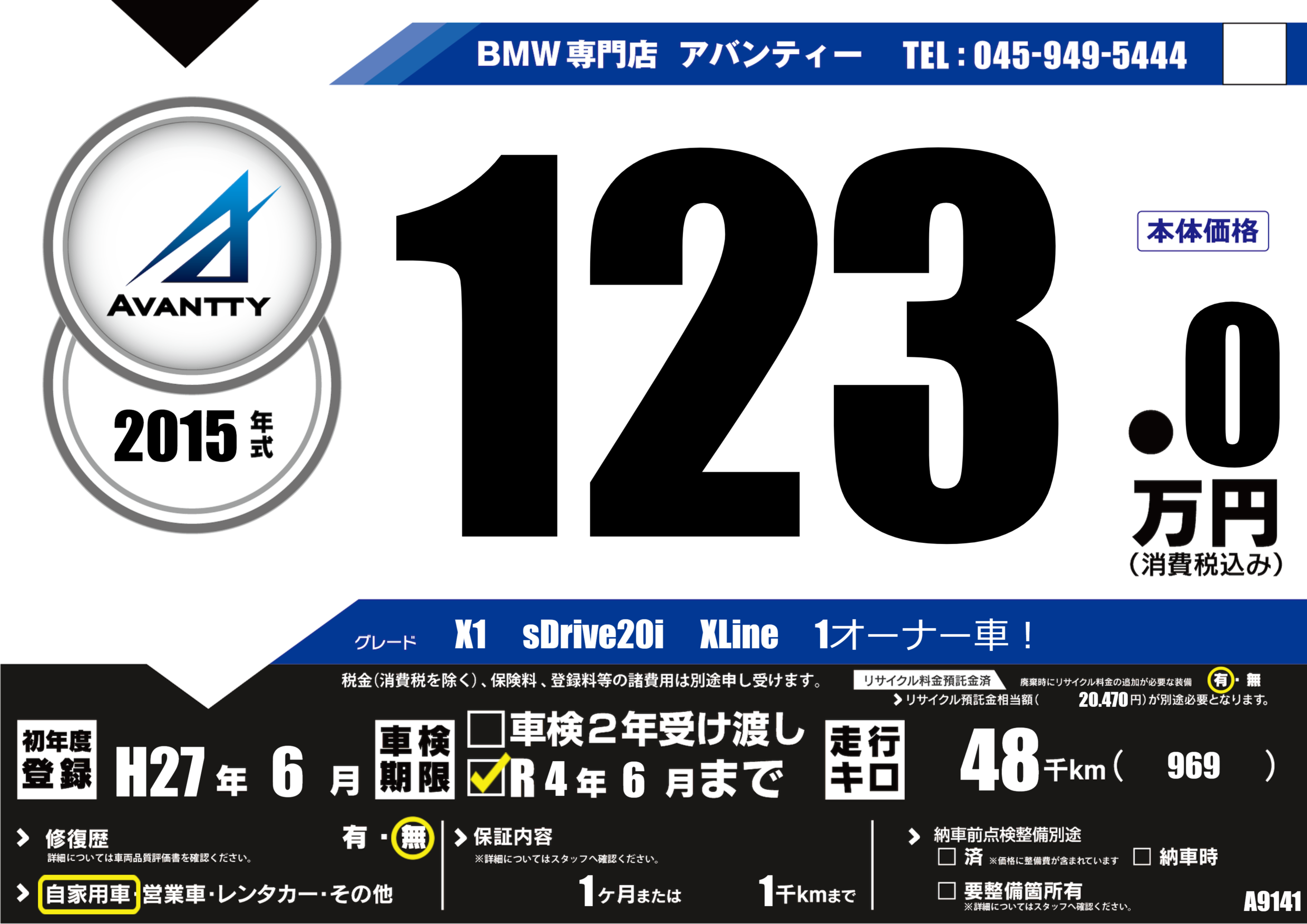 | 走行キロ | 4.8万km | 初年度登録 | H27年6月 |