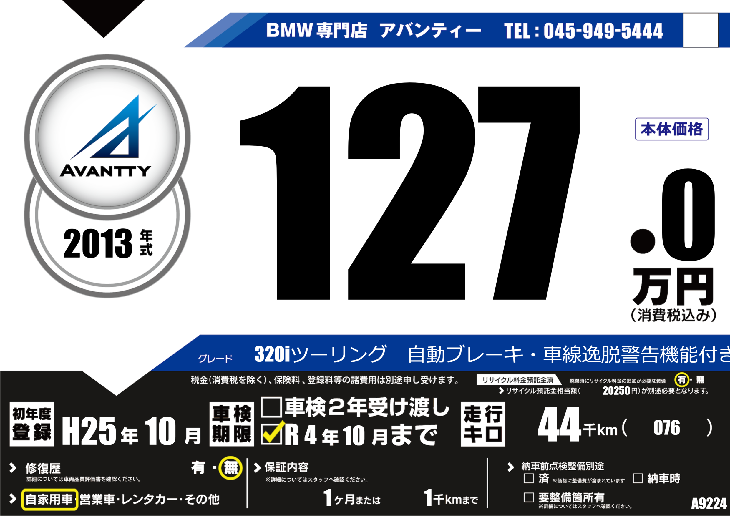 320iツーリング 自動ブレーキ・車線逸脱警告機能付き |