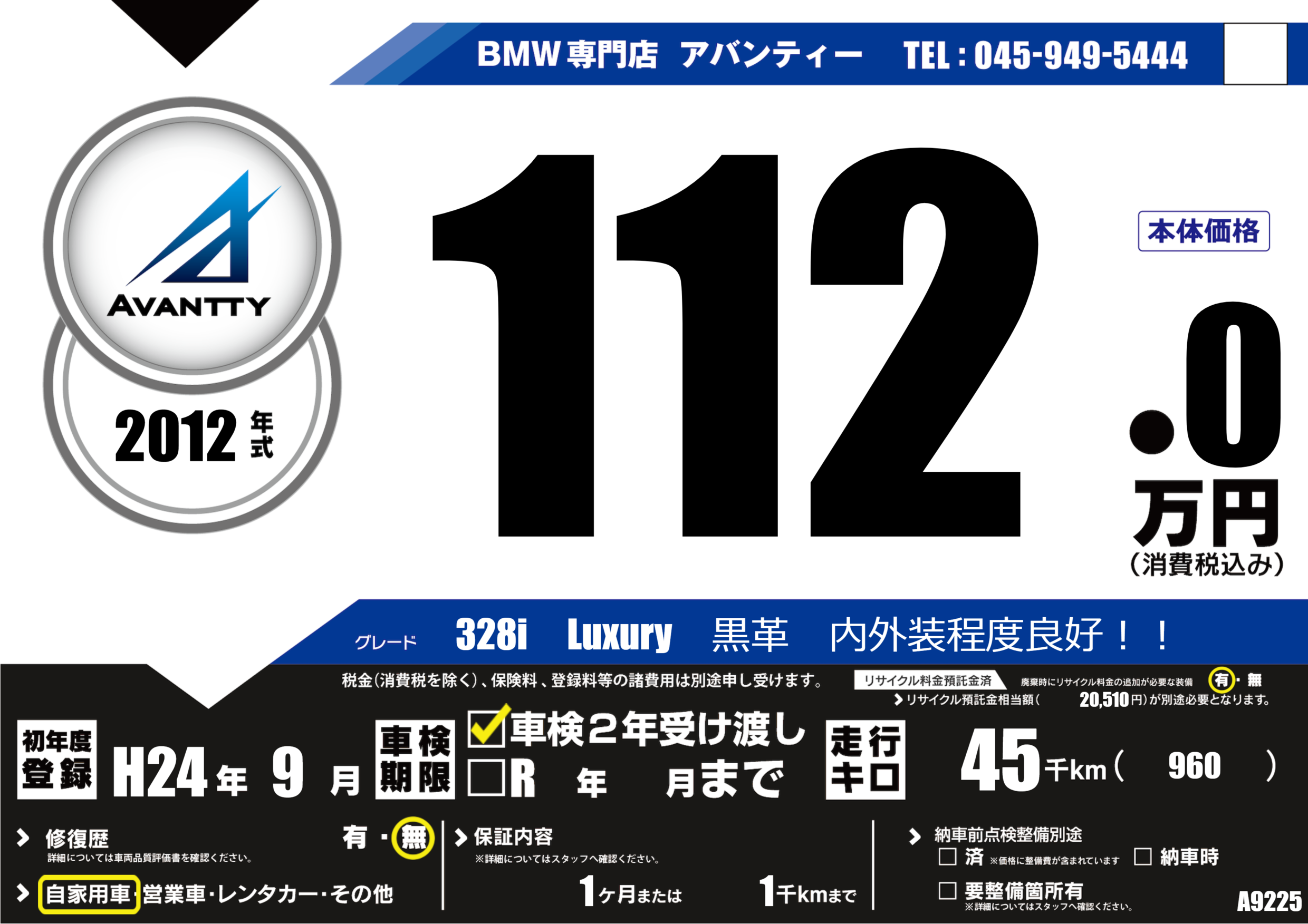 | 走行キロ | 4.5万km | 初年度登録 | H24年9月 |