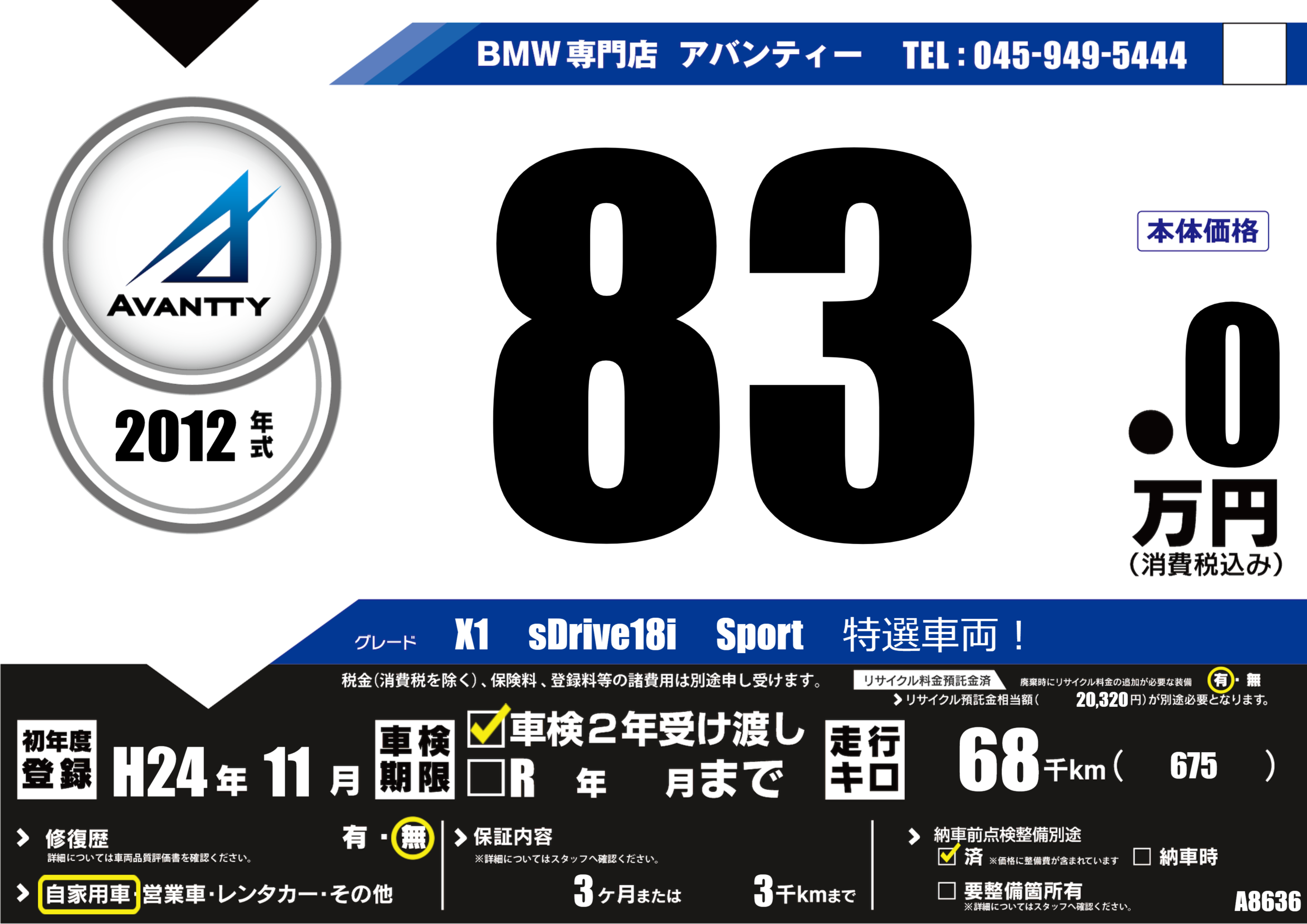 | 走行キロ | 6.8万km | 初年度登録 | H24年11月 |