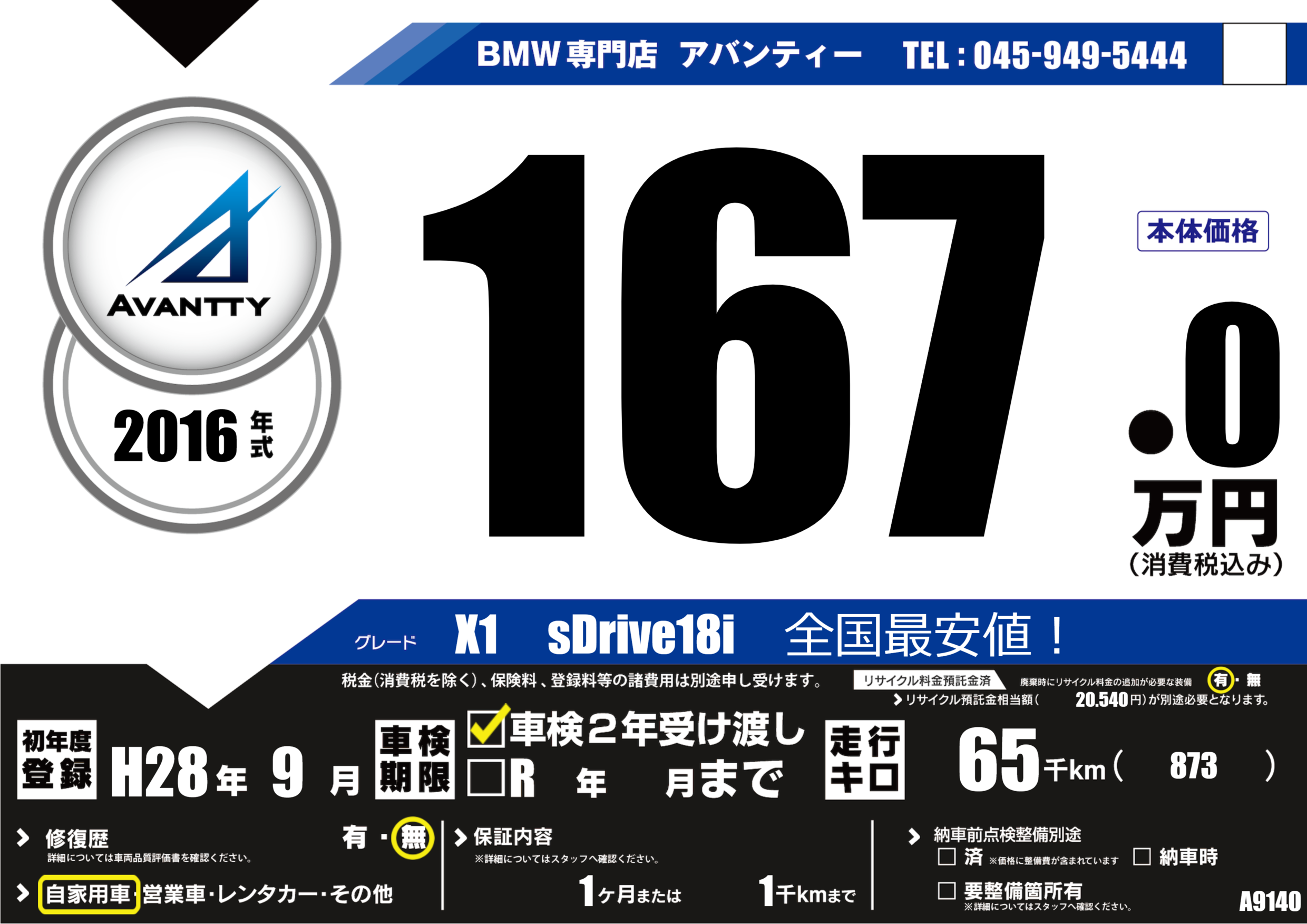 | 走行キロ | 6.5万km | 初年度登録 | H28年9月 |