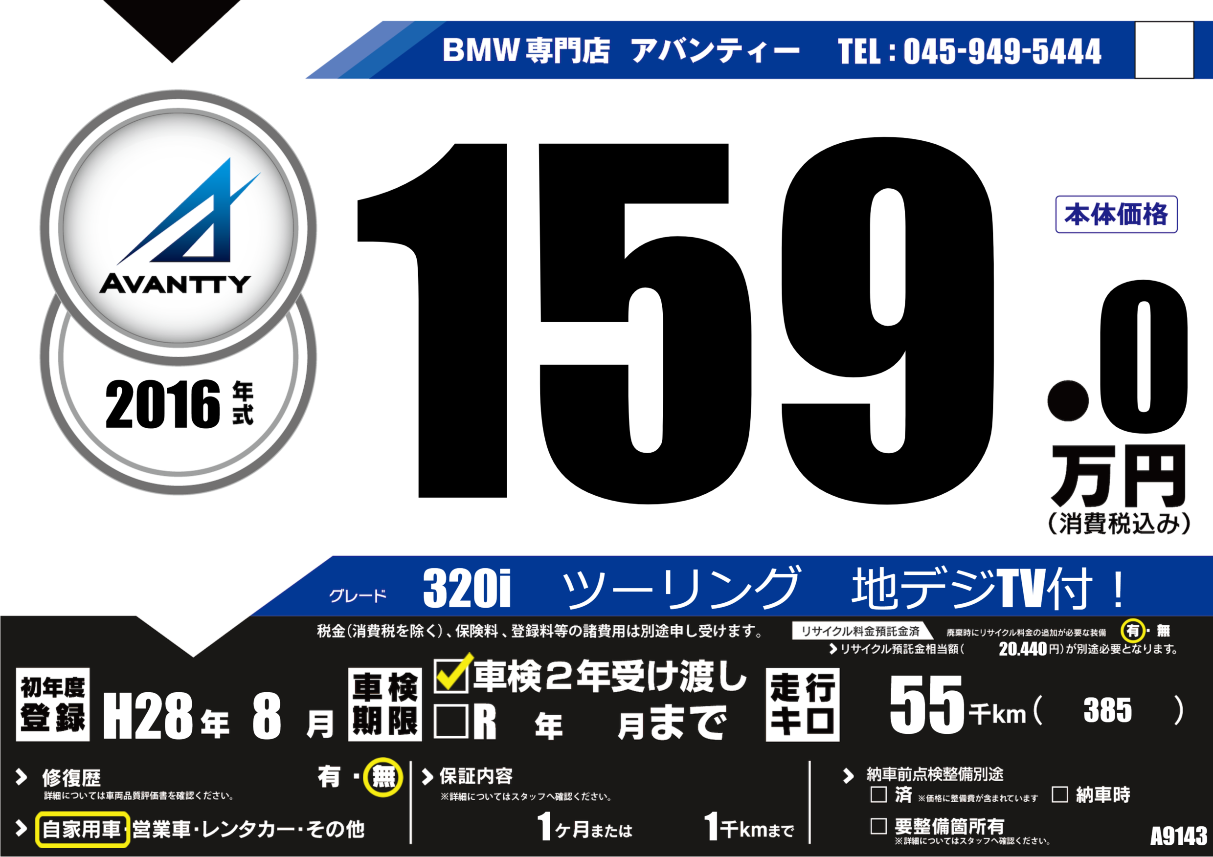 | 走行キロ | 5.5万km | 初年度登録 | H28年8月 |